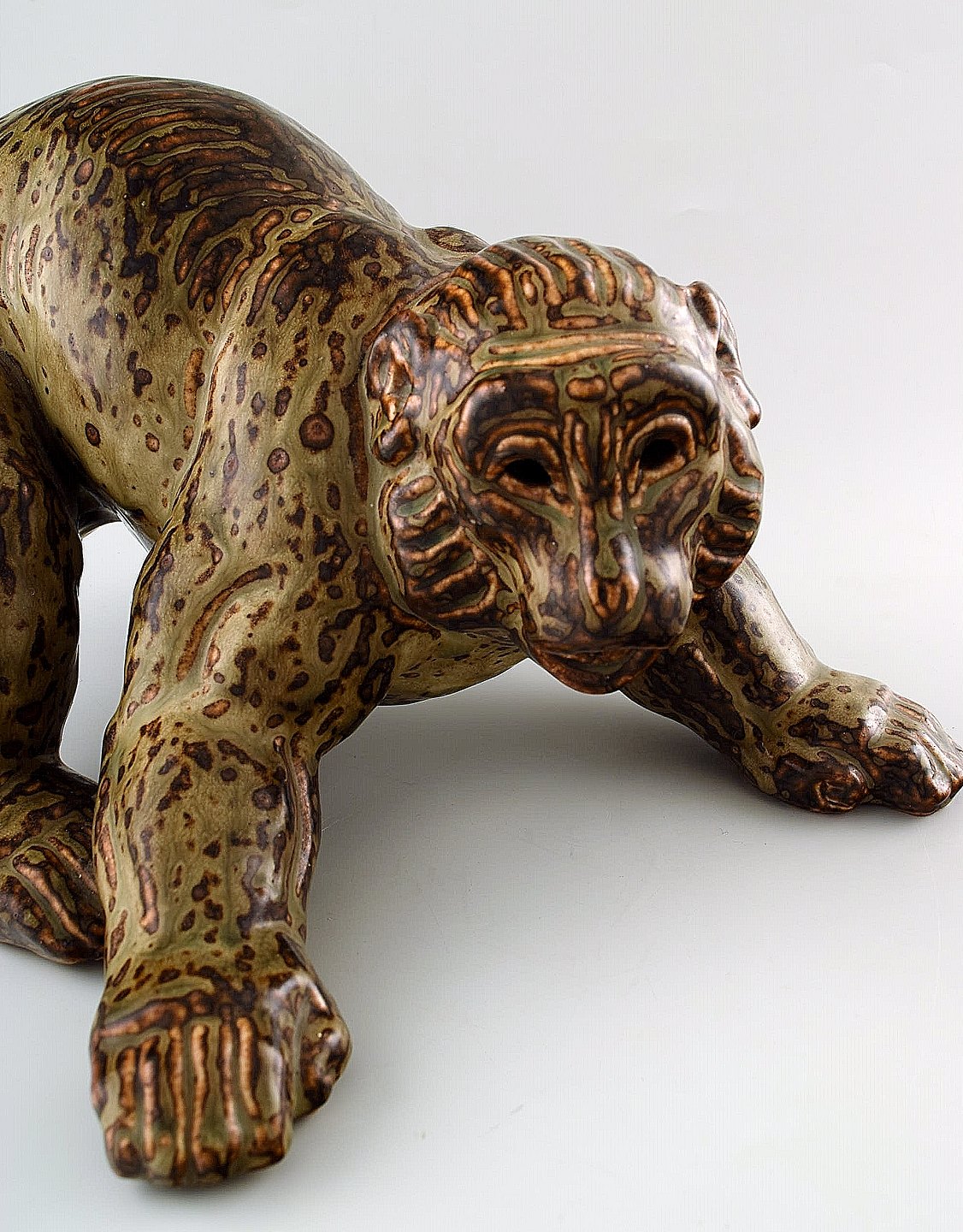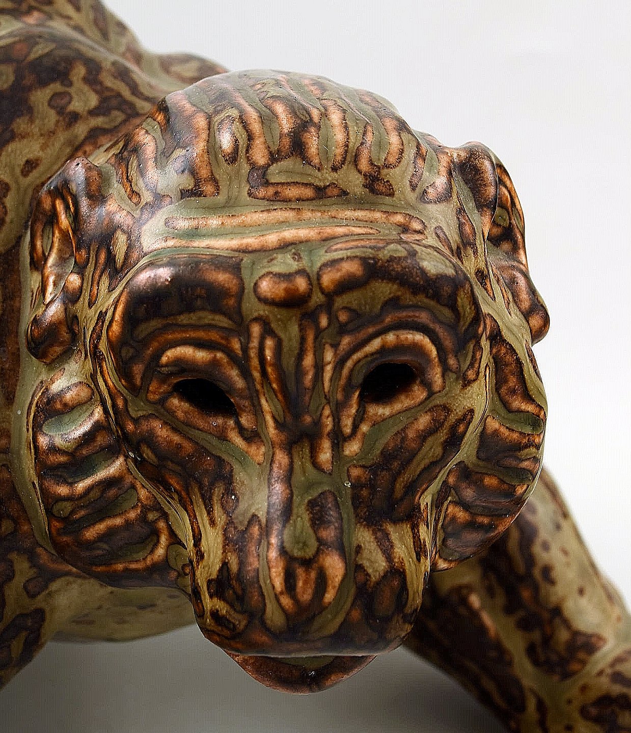 Stor Royal Copenhagen stentøj 20270 Kgl. Abe, kravlende. Knud Kyhn, 1931. I perfekt stand. 1. sortering. Måler 40 cm. x 22 cm.