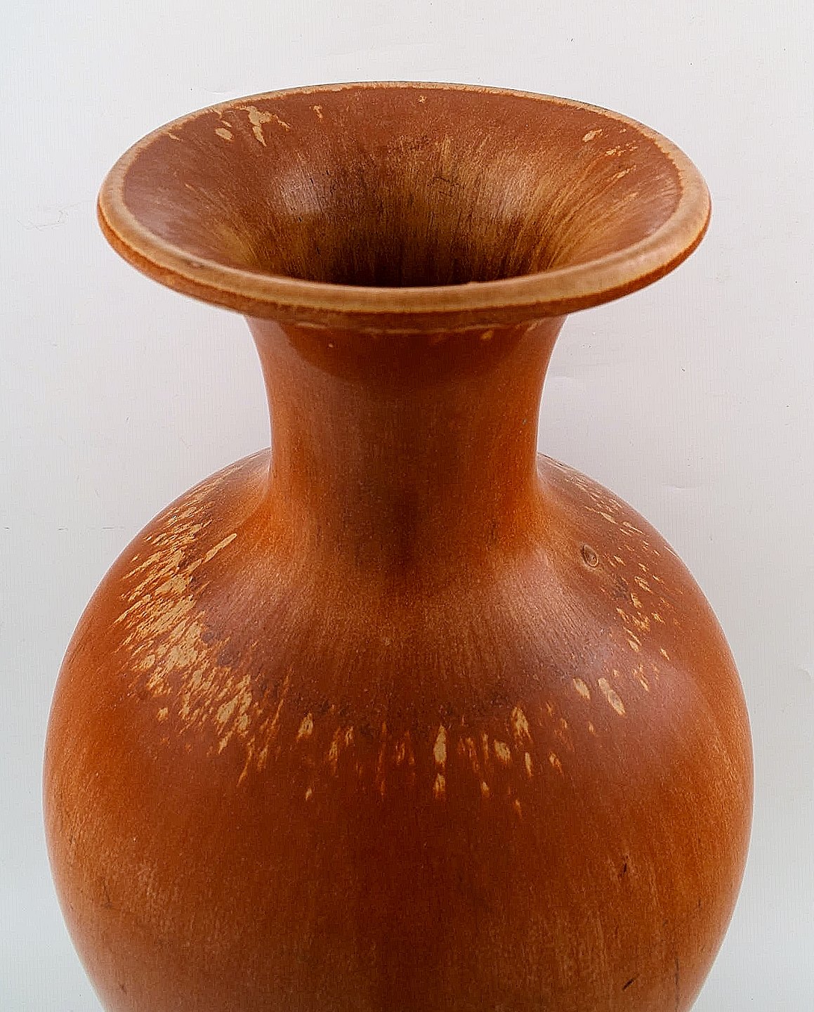 Large Rörstrand floor vase in ceramics by Gunnar Nylund. 45 cm. high. Diameter 21 cm. In perfect condition. Glaze in brown shades. 2.nd factory quality. Stamped.