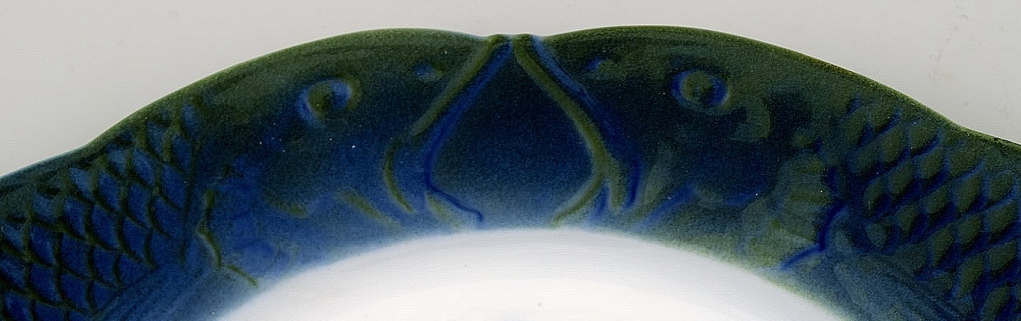Arnold Krog for Royal Copenhagen : "Fiskestel" af porcelæn, middagstallerken dekoreret i farver med søstjerne.