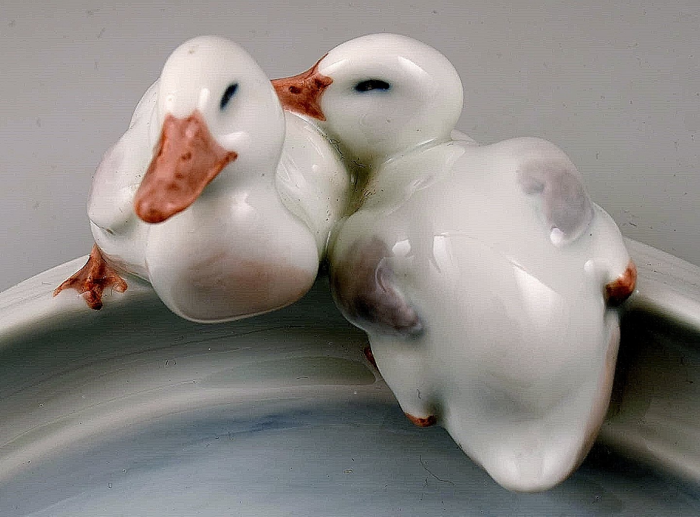 Sjældent Royal copenhagen art nouveau fad med ænder, nummer 1/358. Måler : 27 cm. x 9 cm. 1. sortering, i perfekt stand.