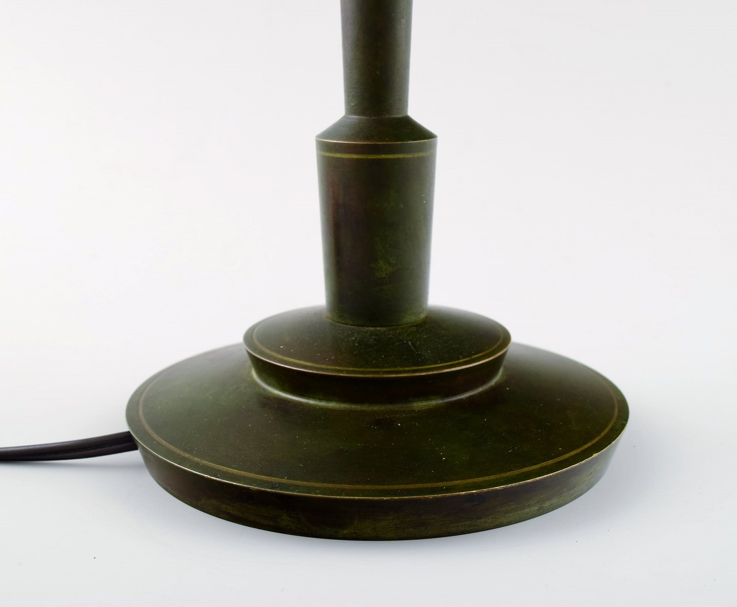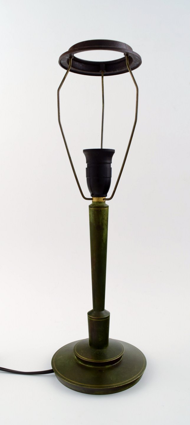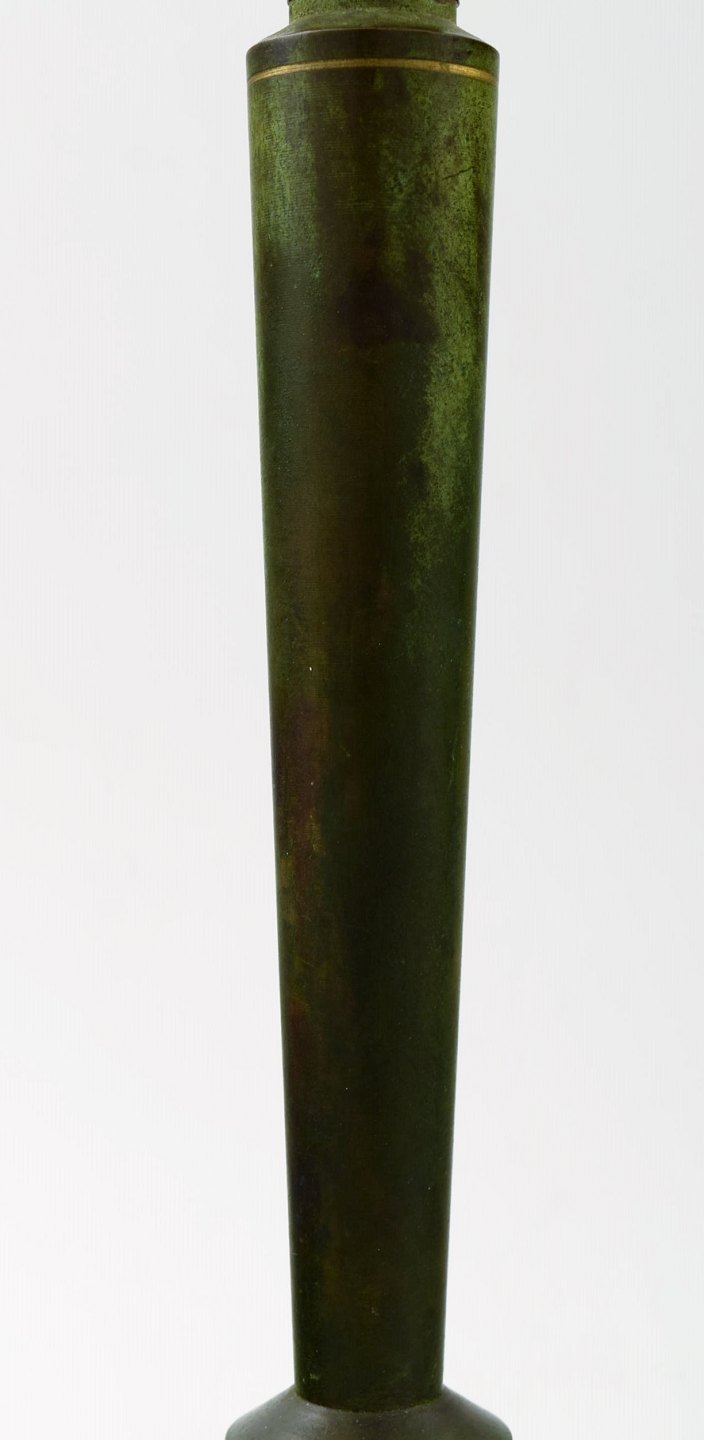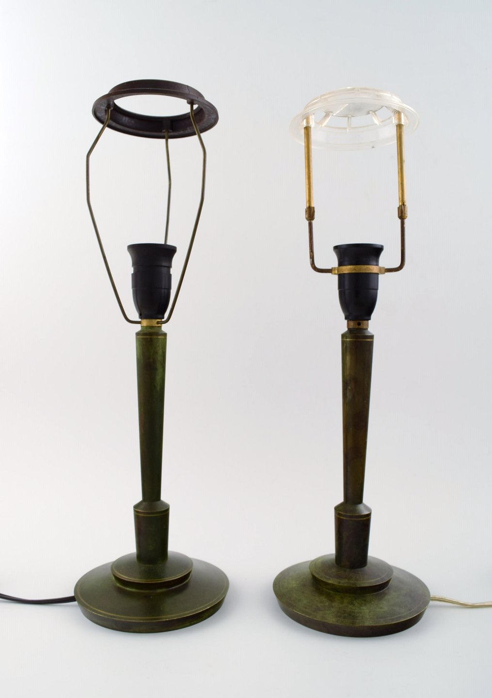 Just Andersen style. A pair of table lamps of bronze on a circular foot, socket in bakelite.