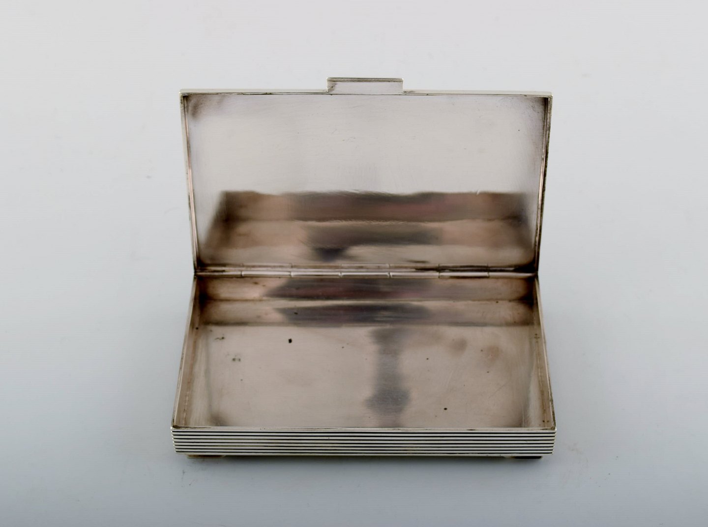 Georg Jensen Sterlingsølv Sigvard Bernadotte skrin nummer 712. 13.5 cm. x 8 cm. x 2.5 cm. Vejer 284 g. Tidligt stempel : 1933-1945. i perfekt stand.