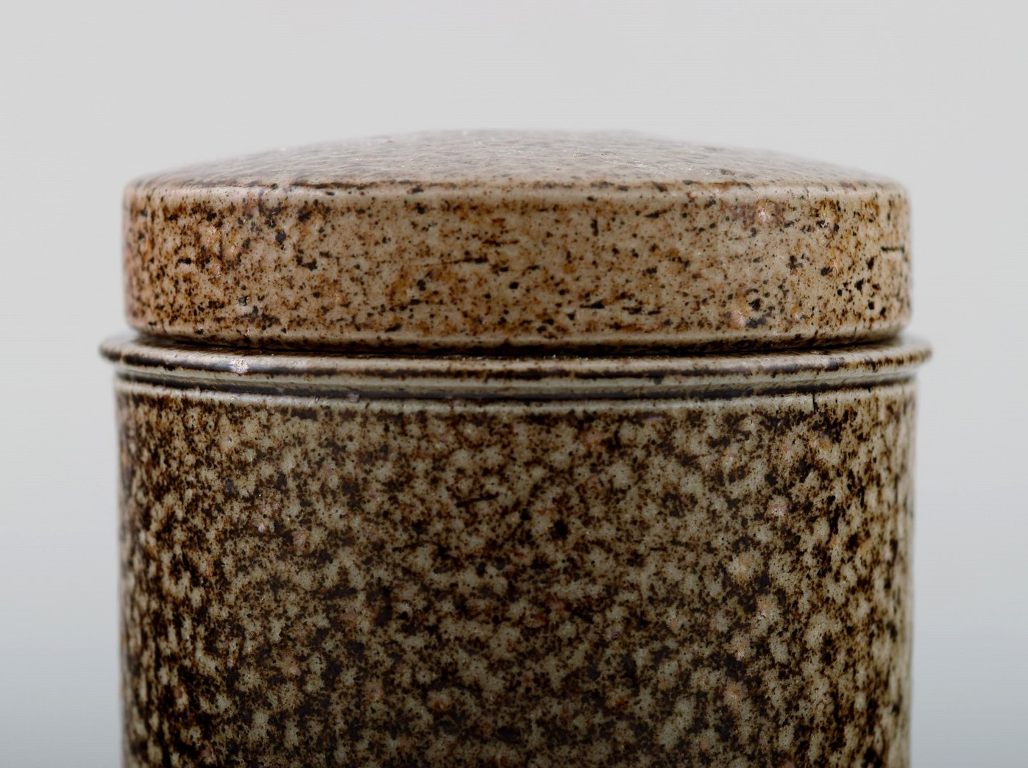 Kähler, Denmark, glazed stoneware lidded jar by Nils Kähler. In perfect condition. Stamped. Measures 10 x 8 cm.