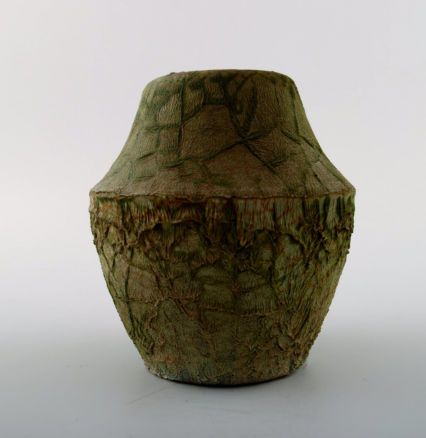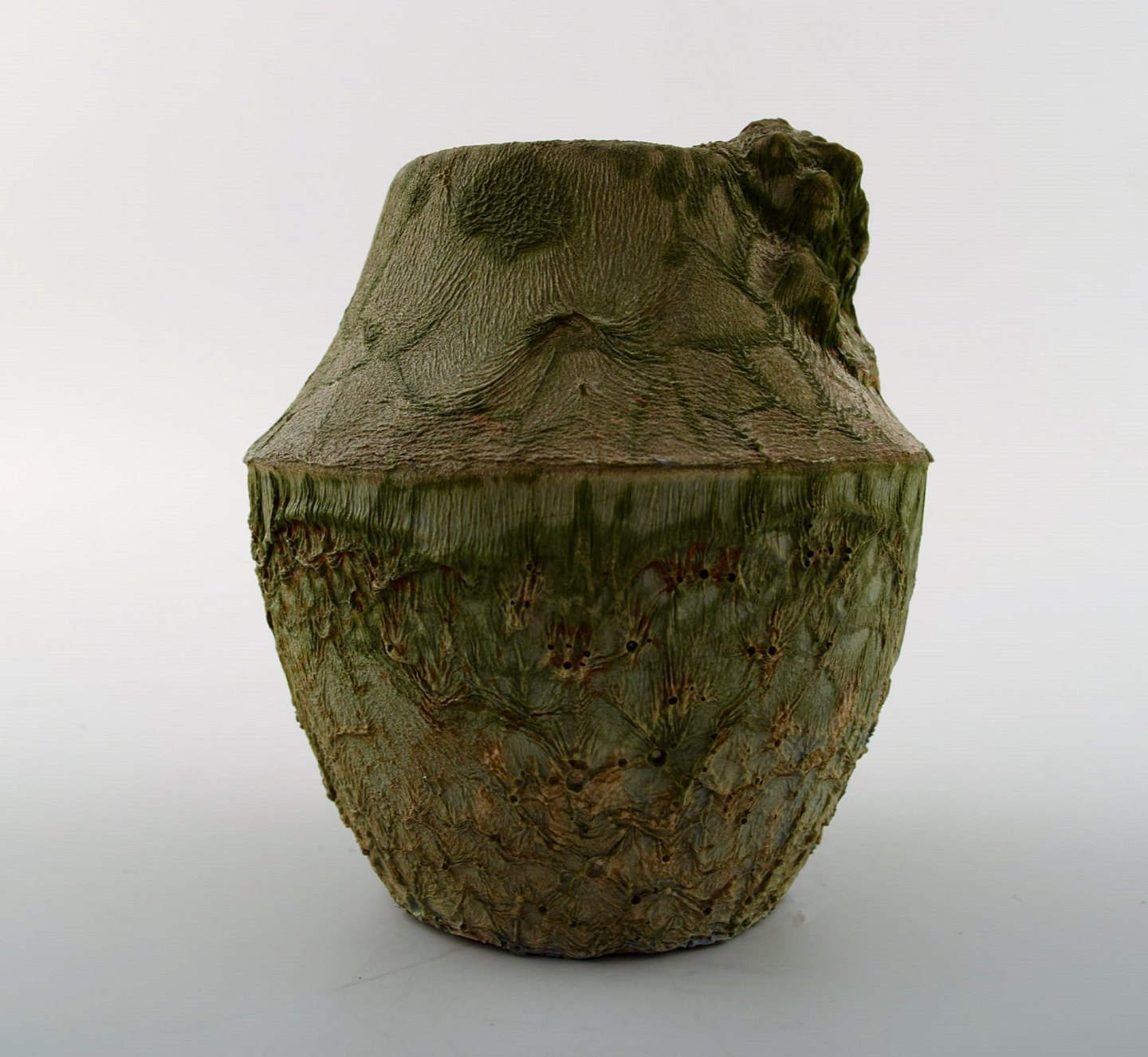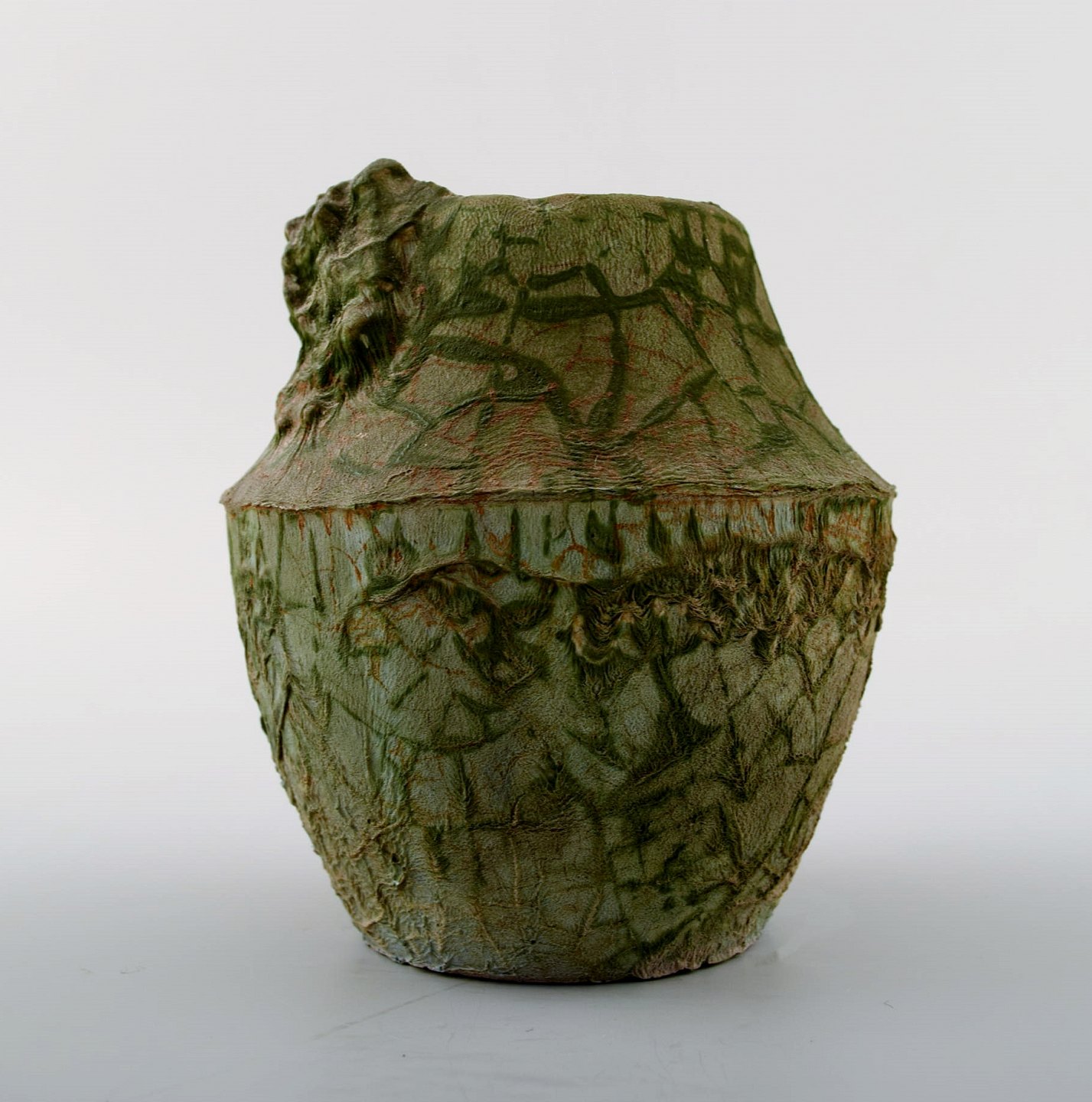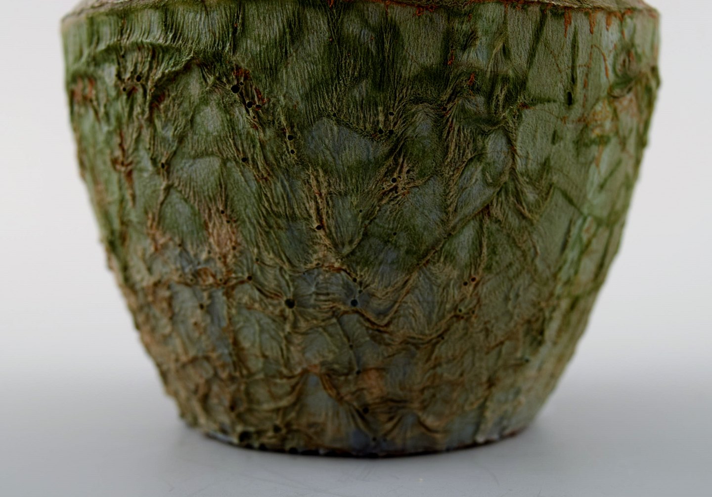 Søren Kongstrand & Jens Petersen style. Vase in ceramic, green brown glaze. Unique work of high quality. Denmark 1920 / 30s. Measures 9.5 x 8 cm. In perfect condition. Unsigned.