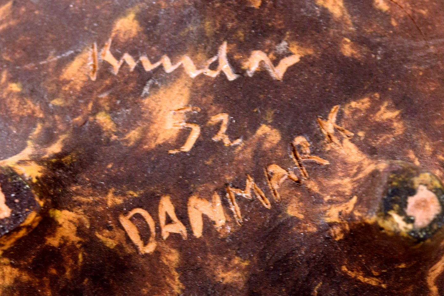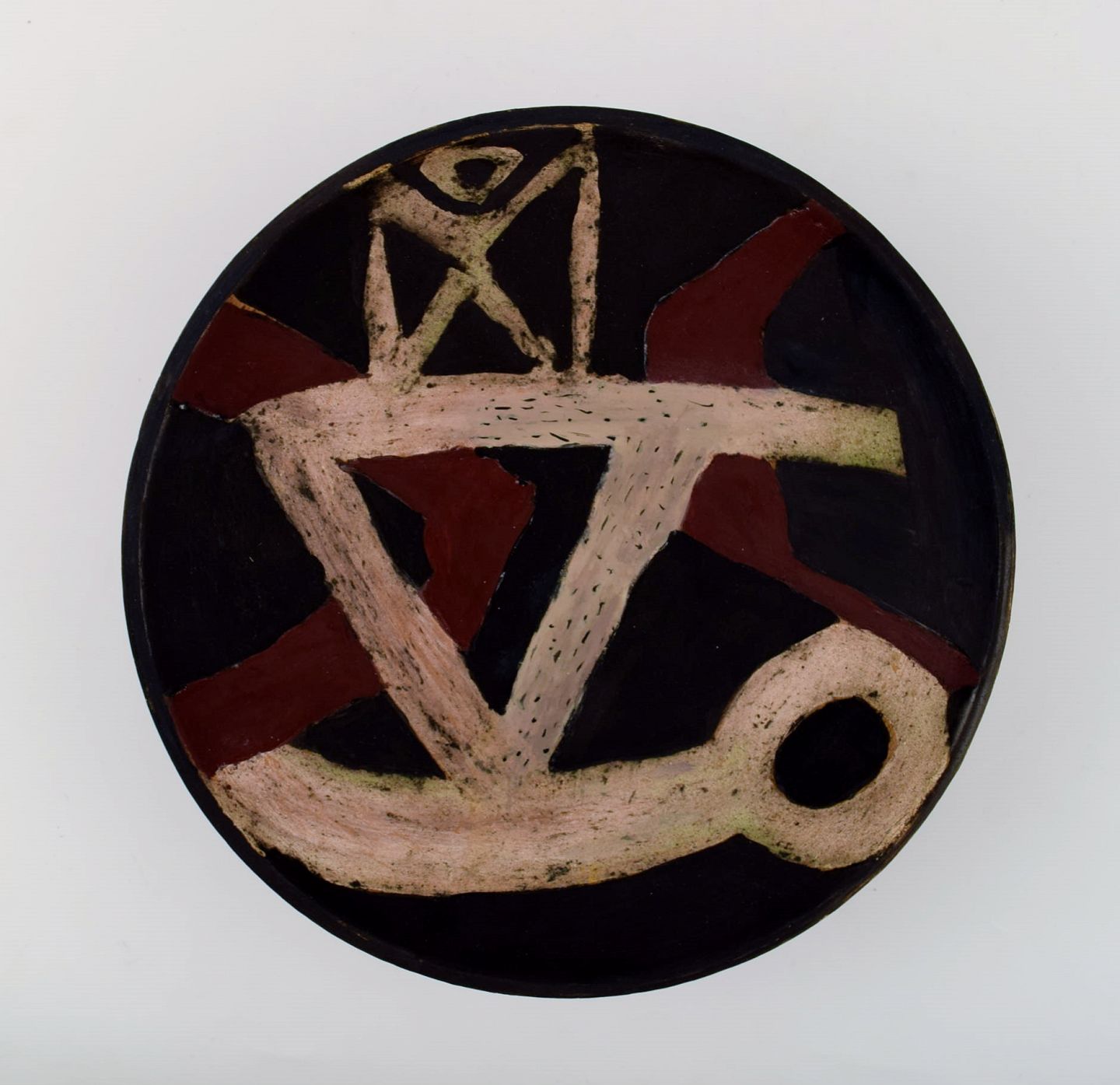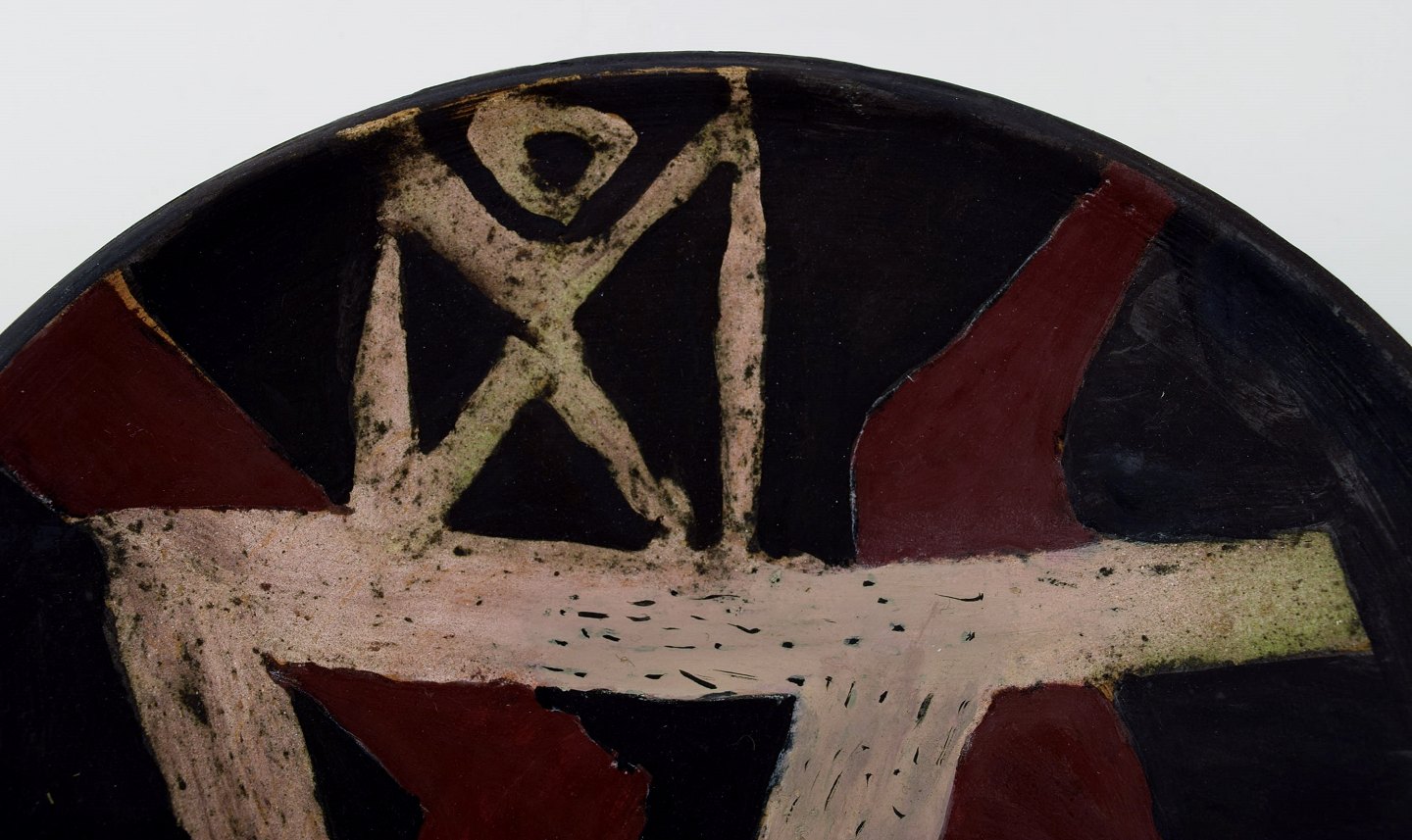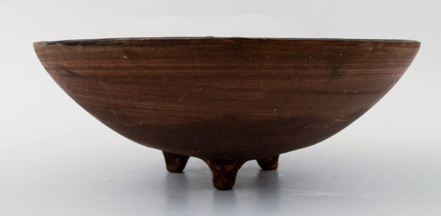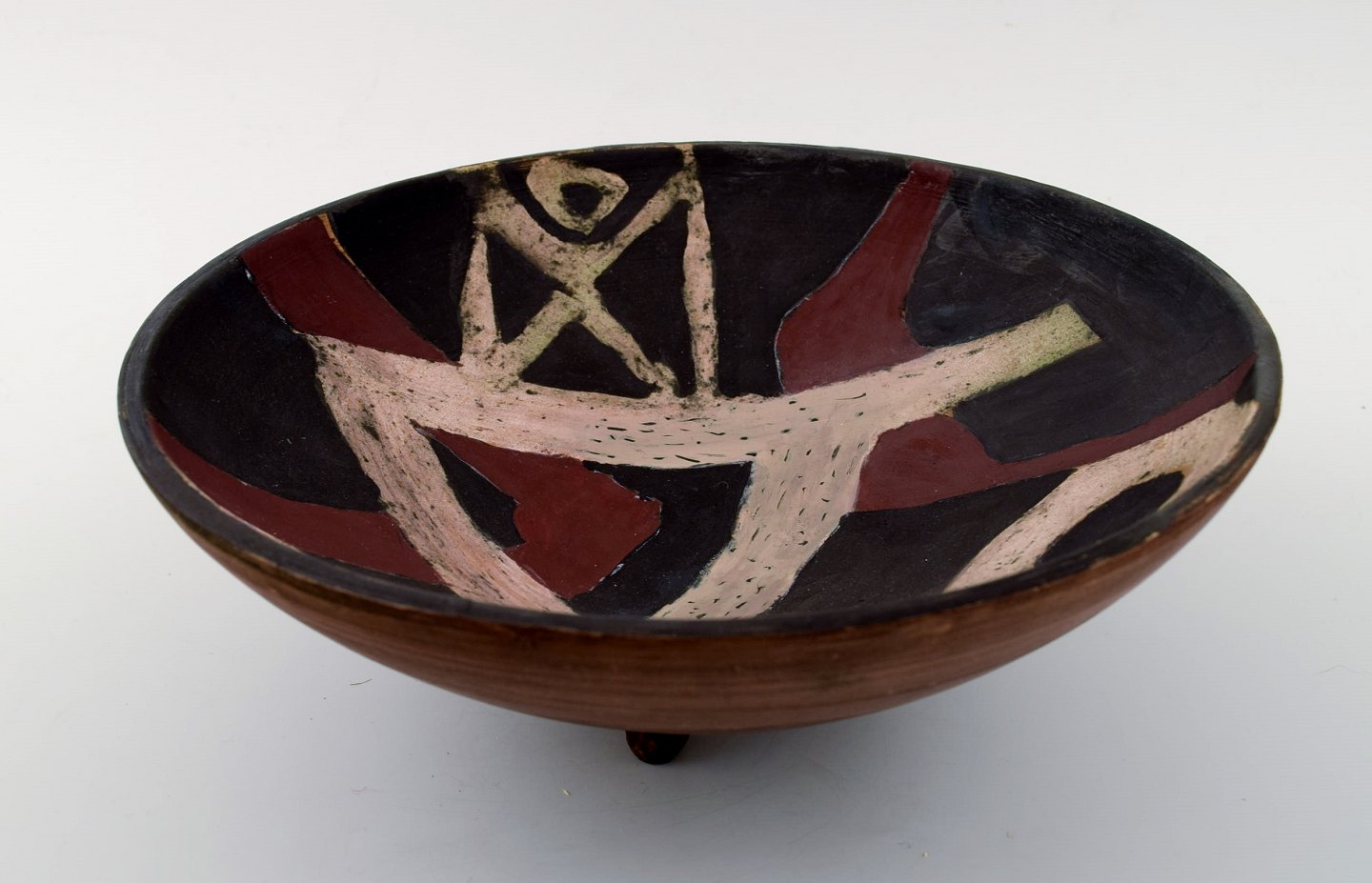 Knud Nielsen, født 1916. skål på trefod af keramik, abstrakt motiv. 1952.