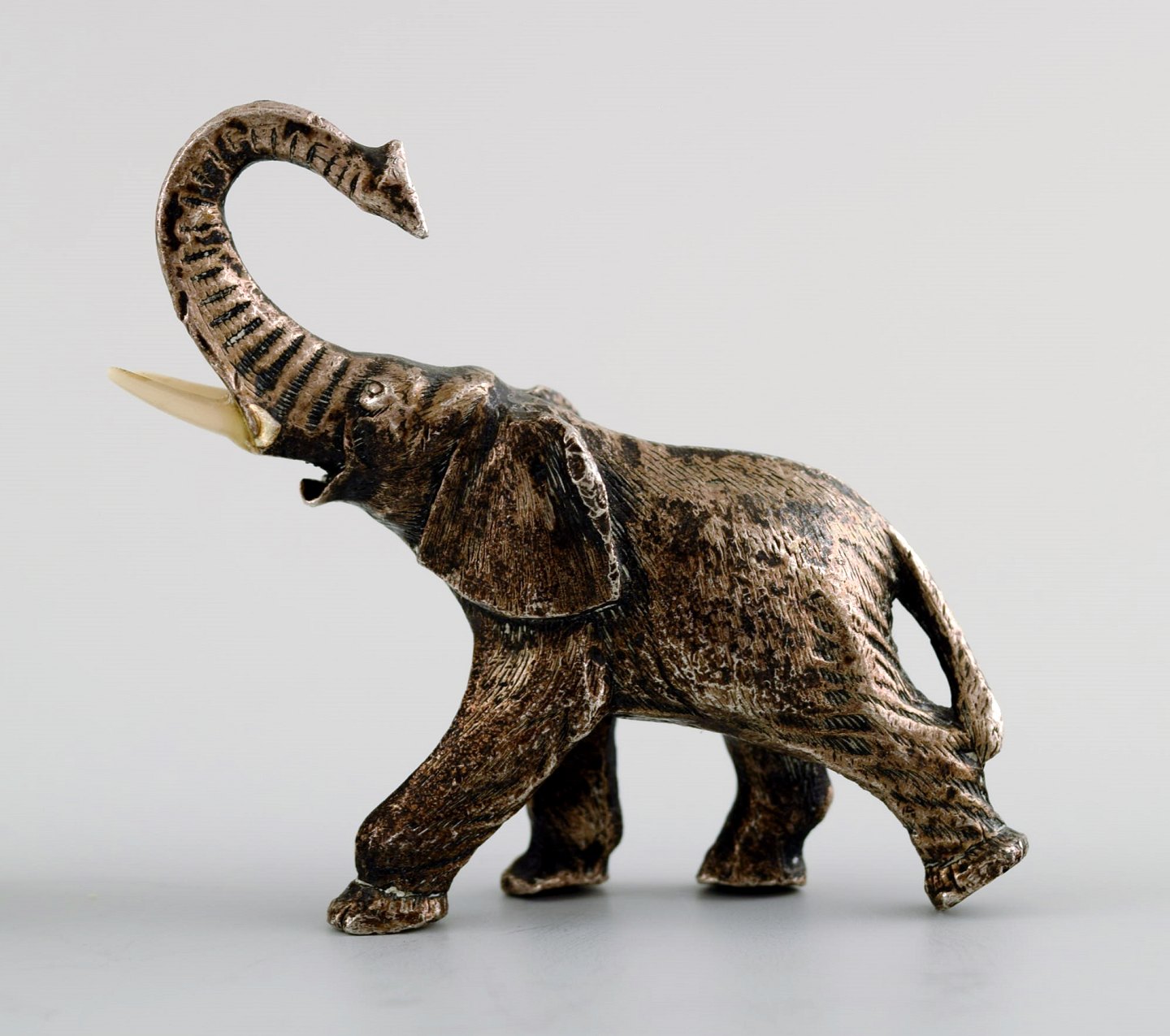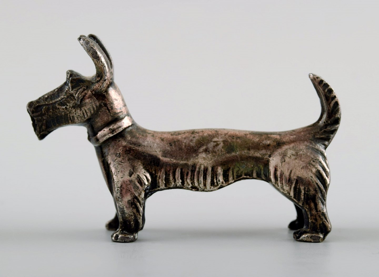 Fire miniature figurer i diverse metaller, tidligt 1900 tallet. To elefanter, skotte og pekingeser. I flot stand med god patina. Måler : Største 75 mm. x 50 mm. Delvist signeret.