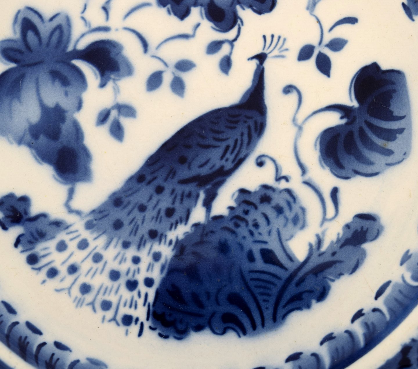 Påfuglestel fra Københavns fajancefabrik/Aluminia. Flad tallerken i fajance. 3 stk. på lager. Vi har mange dele på lager. Måler : 19 cm. I flot stand.