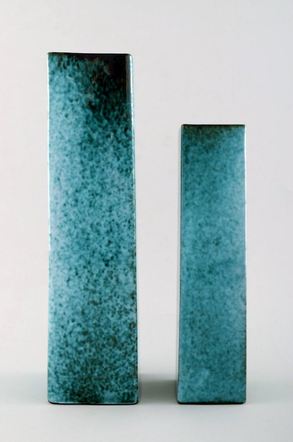 Skandinavisk keramiker, fire keramikvaser. Håndmalet, unika. Utydeligt signeret. Største måler : 26,5 cm. x 6,5 cm.