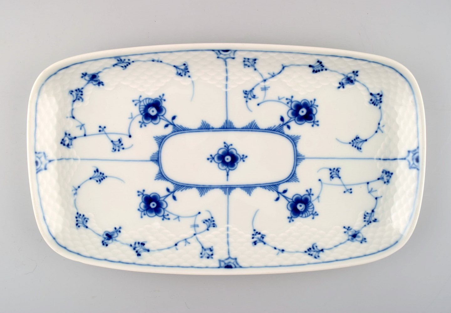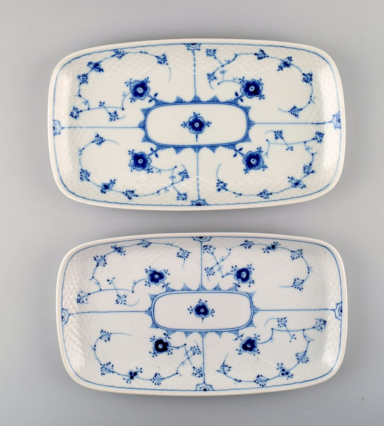 2 Bing & Grondahl, B&G blue fluted rectangular trays / dish. Measures: 27 x 2,5 x 15 cm. Number 264. 1. Assortment, in perfect condition.