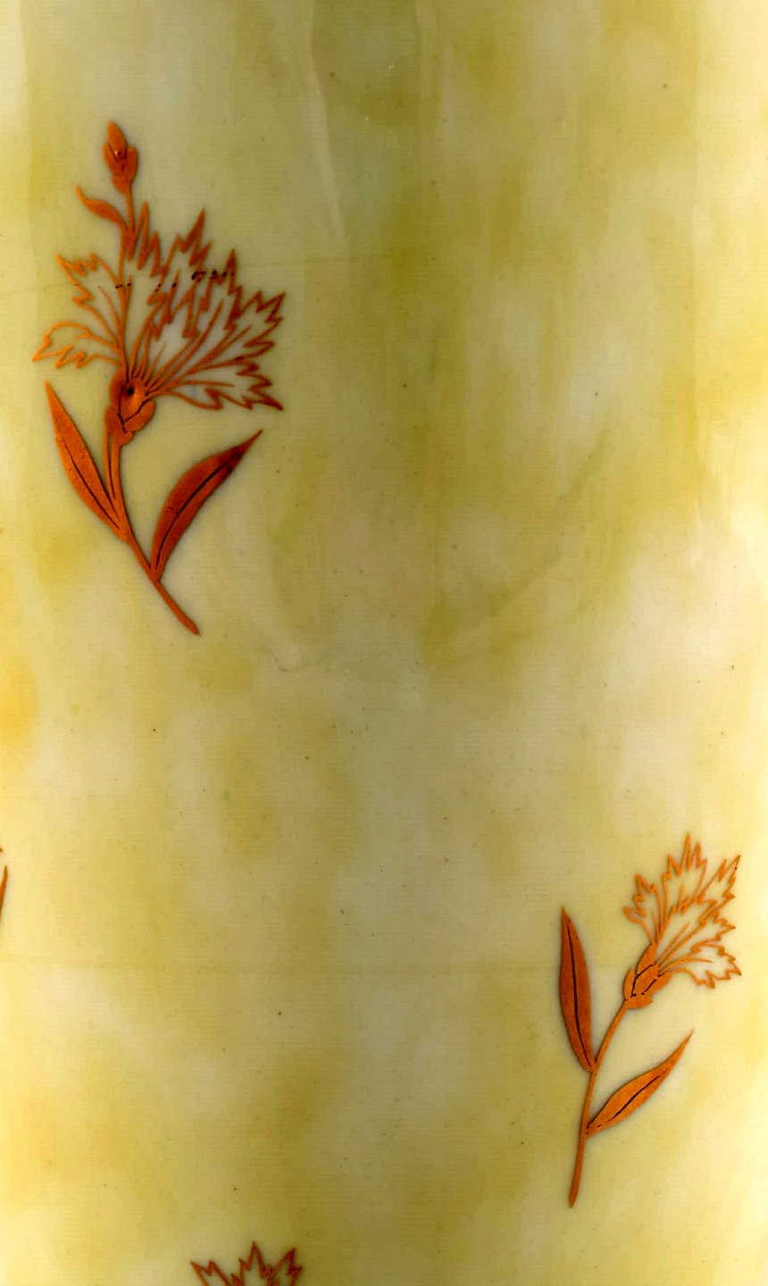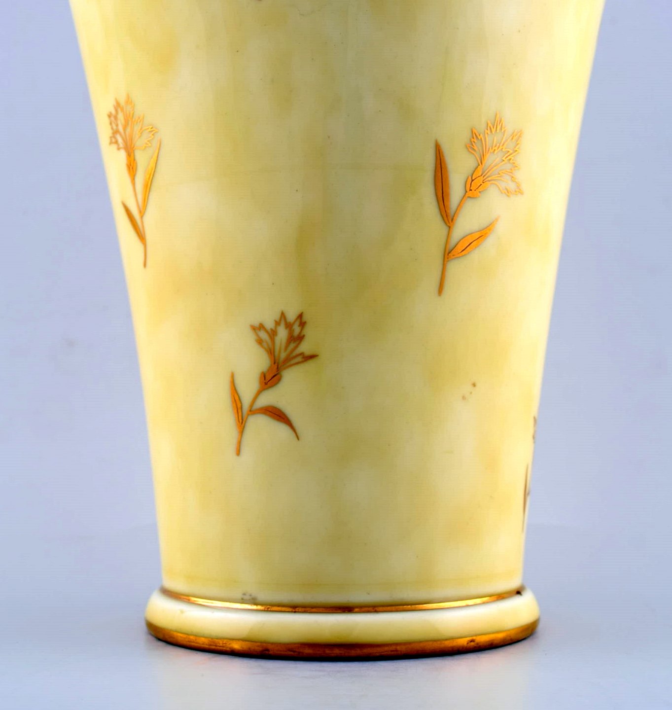 Stor Sevres vase i porcelæn med gul glasur. Dekoreret med blomster i guld. I perfekt stand. Dateret 1901. Måler 34 cm. x 16 cm.