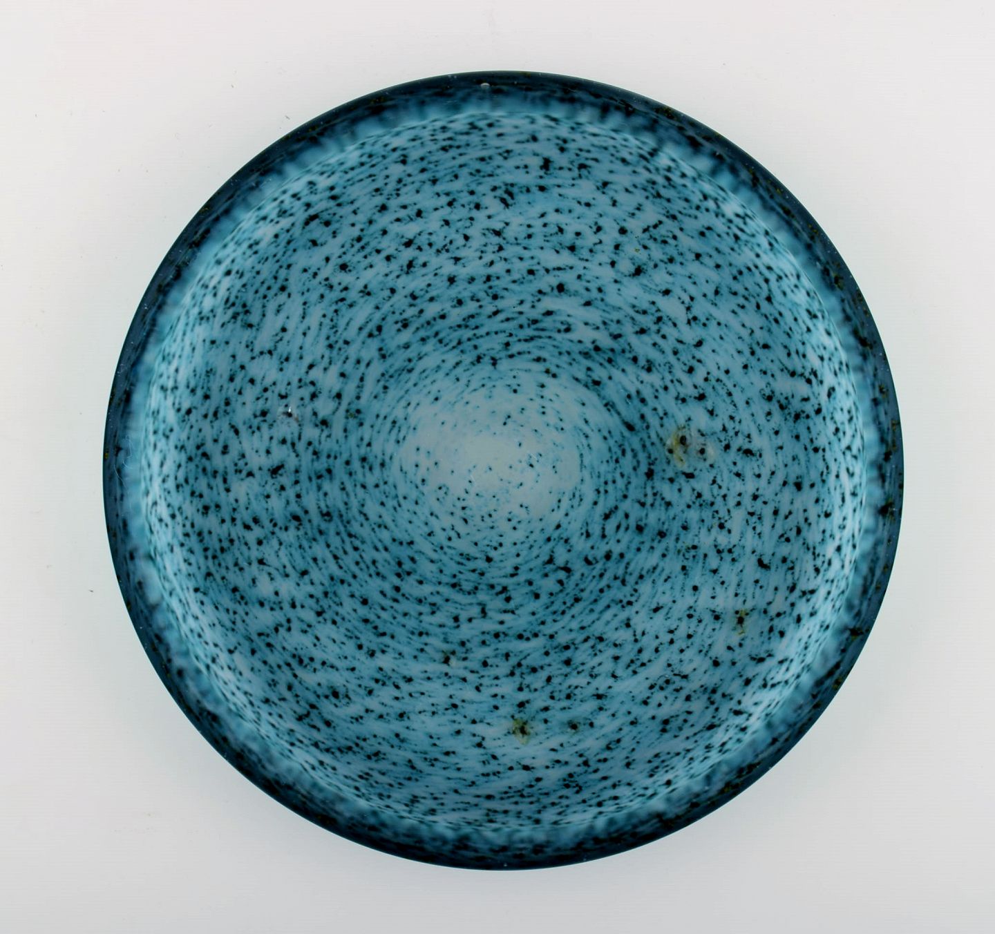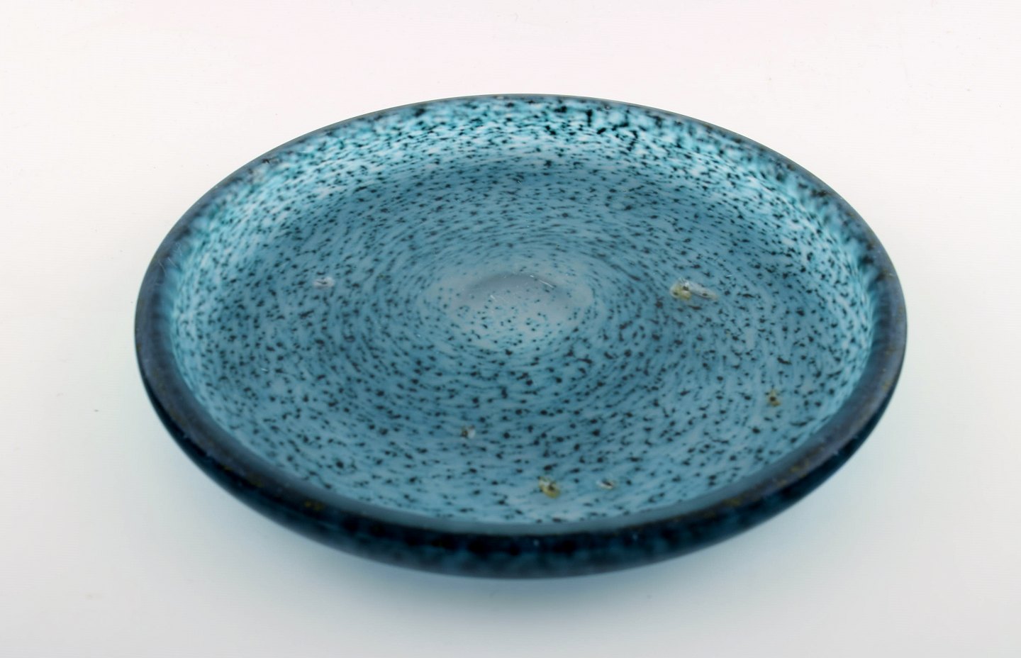 Hadeland, Norway blue art glass dish, 1950s. Signed Hadeland. Diameter 20 cm. In perfect condition.