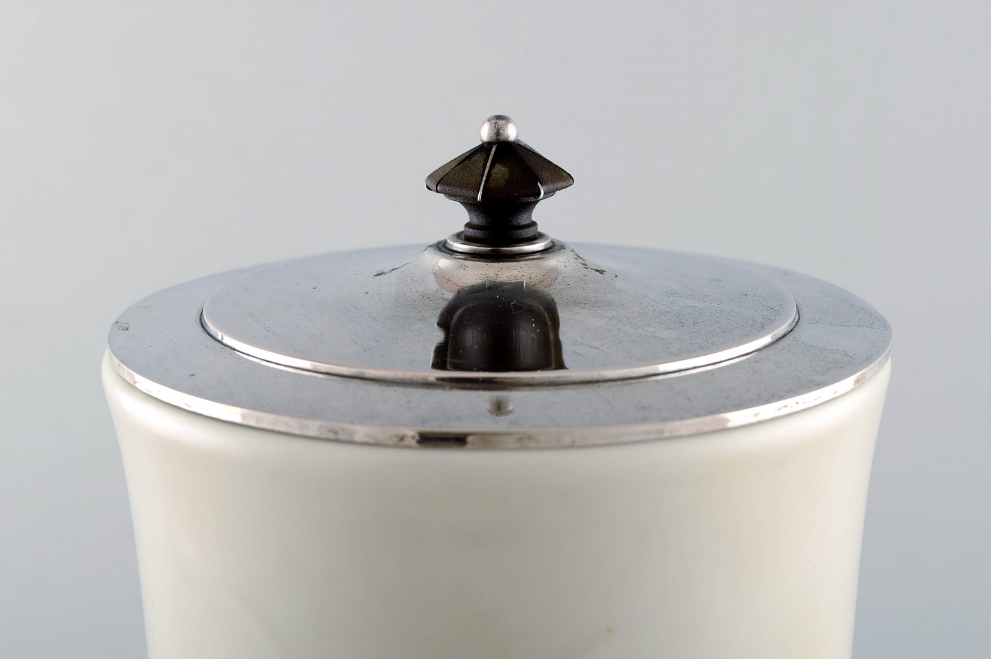 B&G, Bing & Grøndahl Art deco stor vase af porcelæn med tilhørende tretårnet sølvlåg fra Cohr, motiv af nøgen kvinde. Stemplet : B&G Måler : 35 cm. x 14,5 cm. 1. sortering, i perfekt stand.