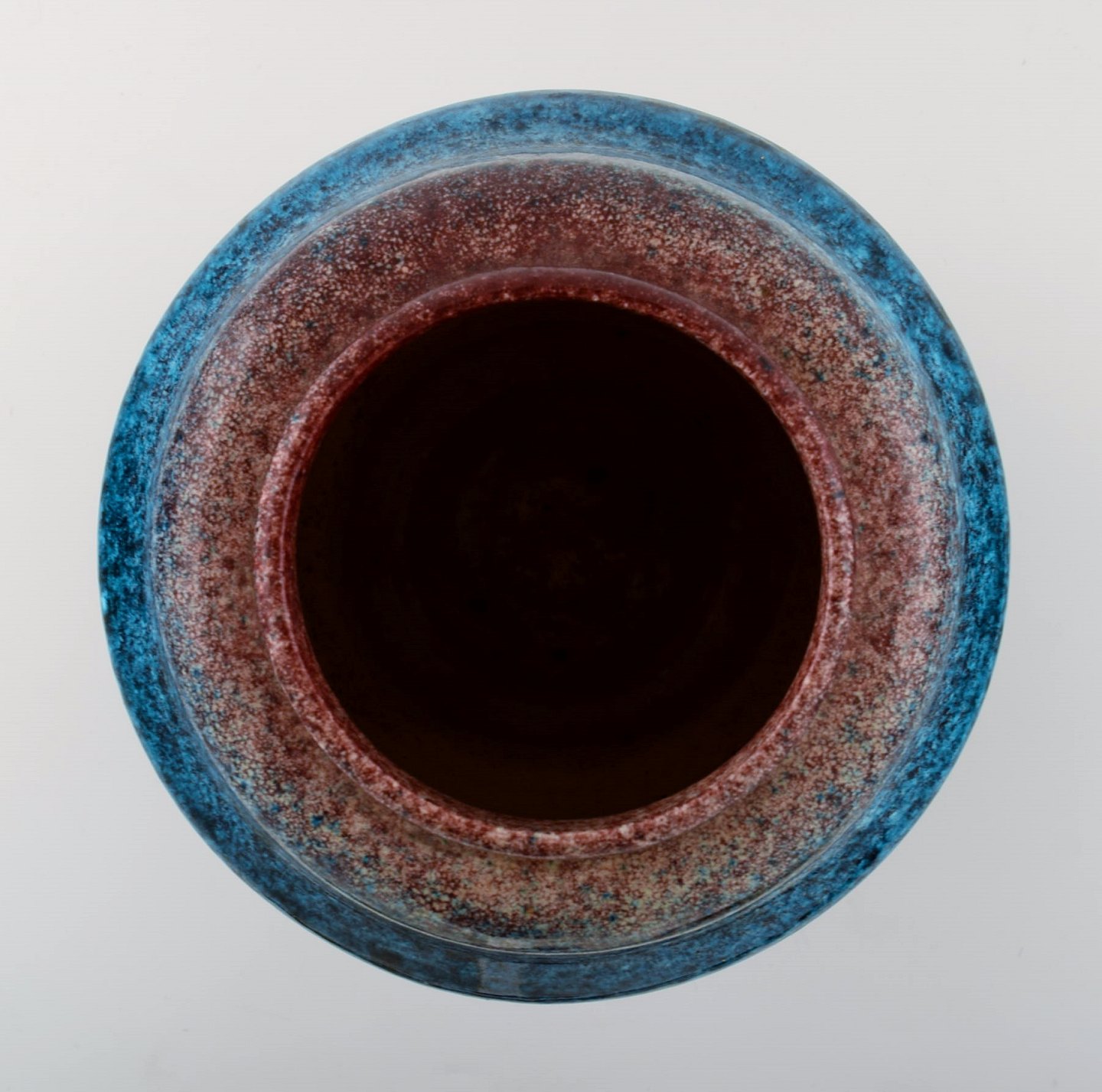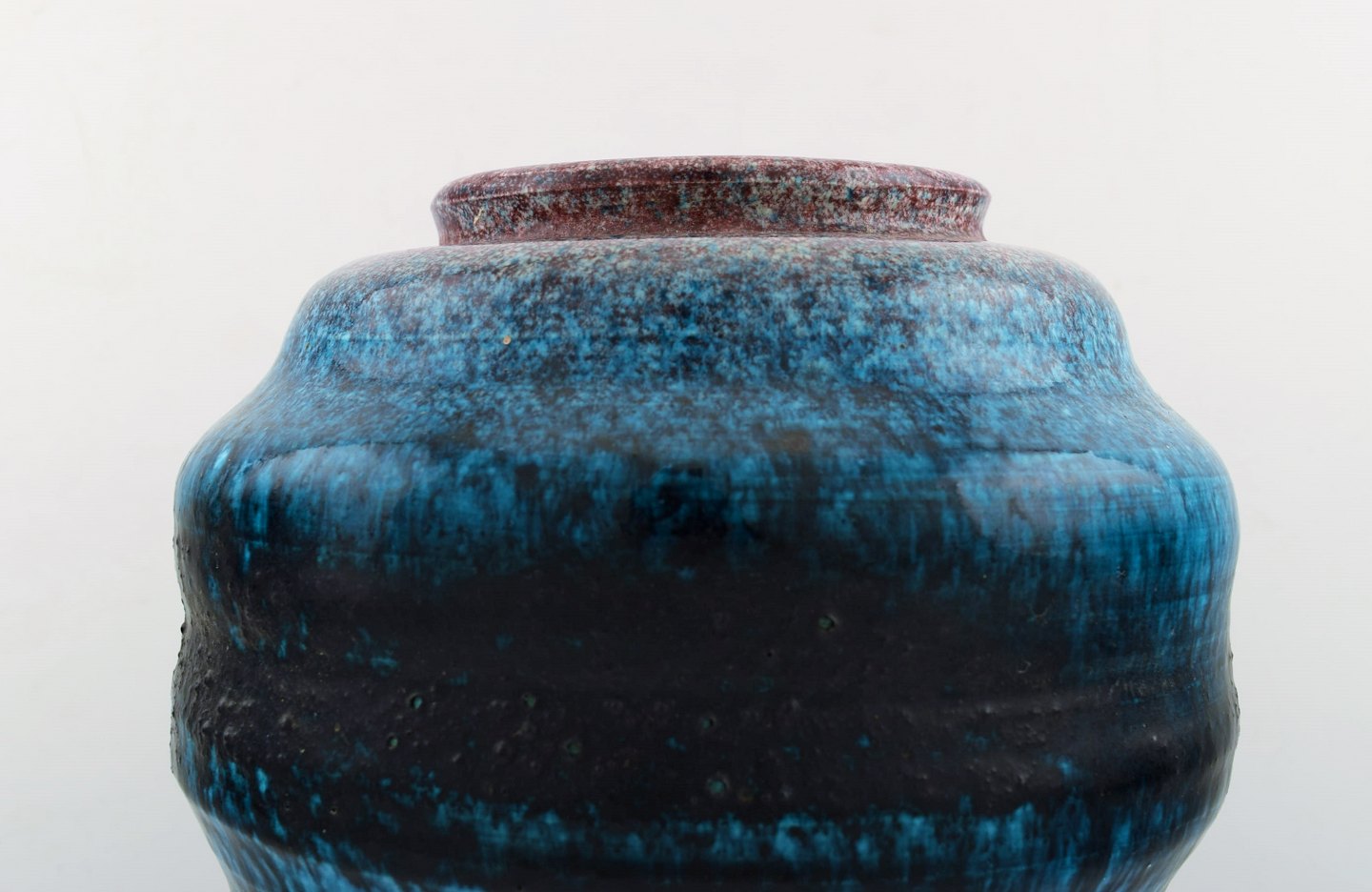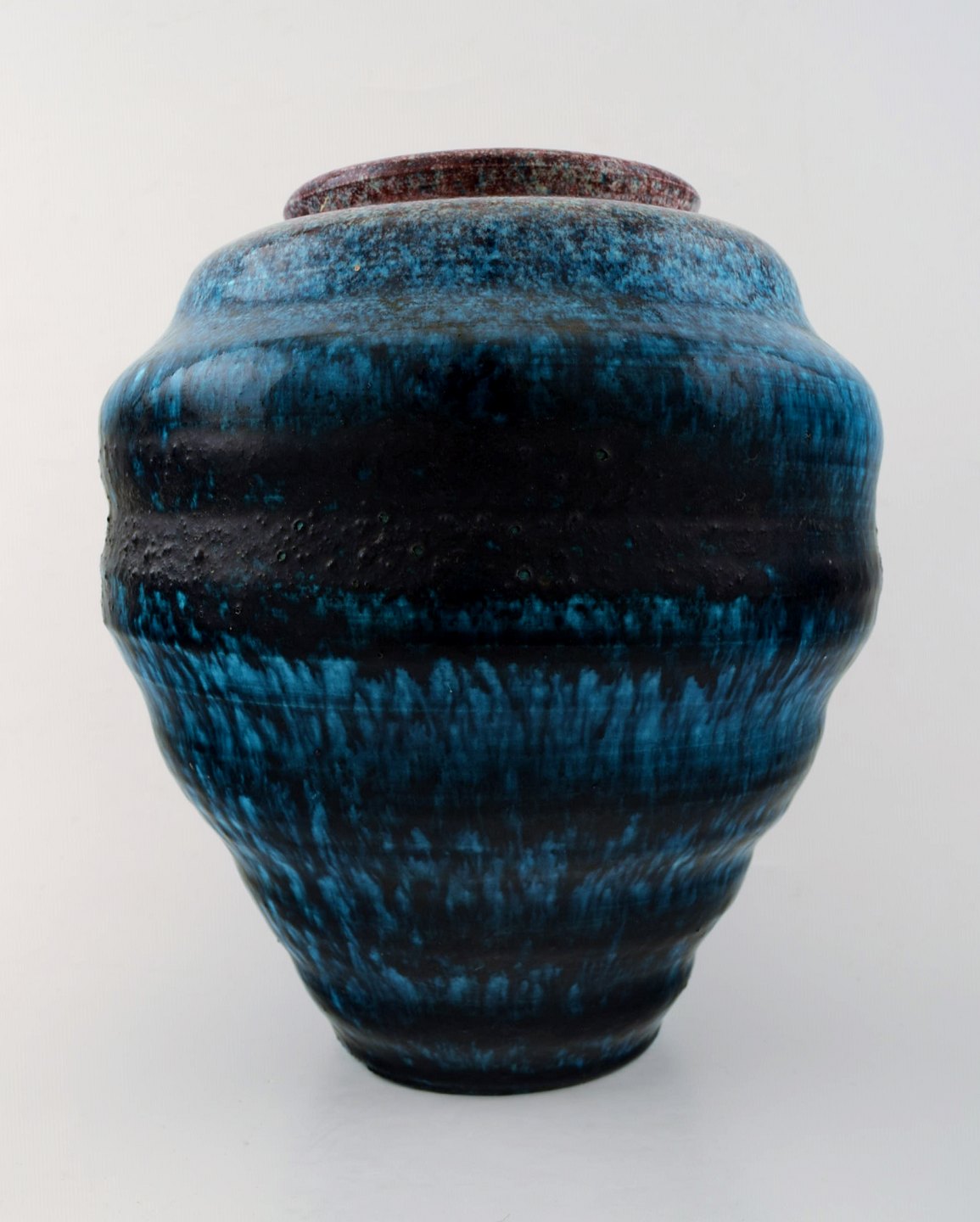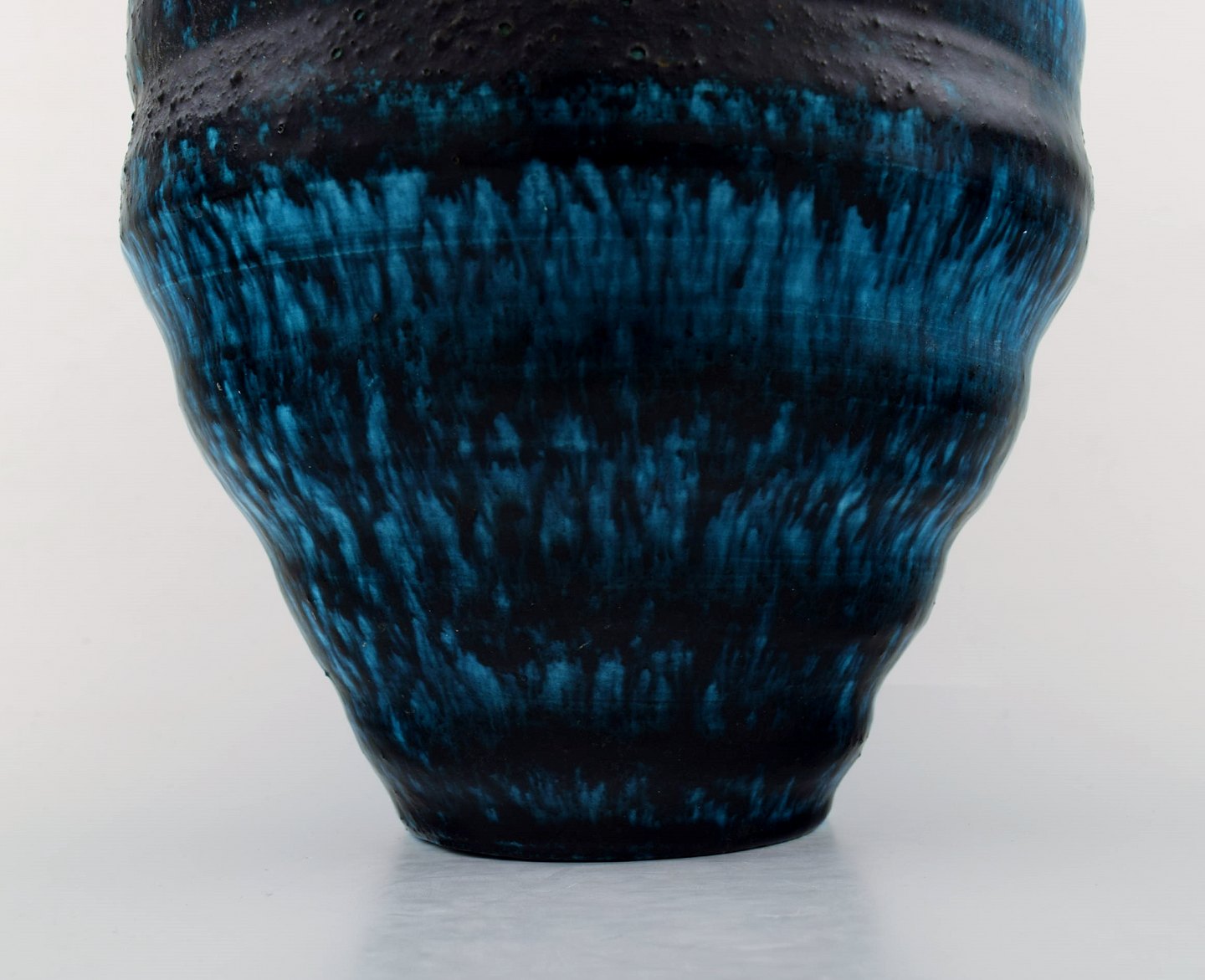 Accolay, Fransk keramikvase. Turkis, stilrent design med striber.