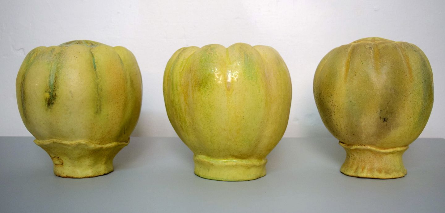 Alf Ekberg, svensk keramiker. Tre store unika skulpturer i keramik. Organisk græskar lignende skulpturer. Ca. 1990´erne. Måler : 28 cm. x 23 cm. I perfekt stand. Signeret.