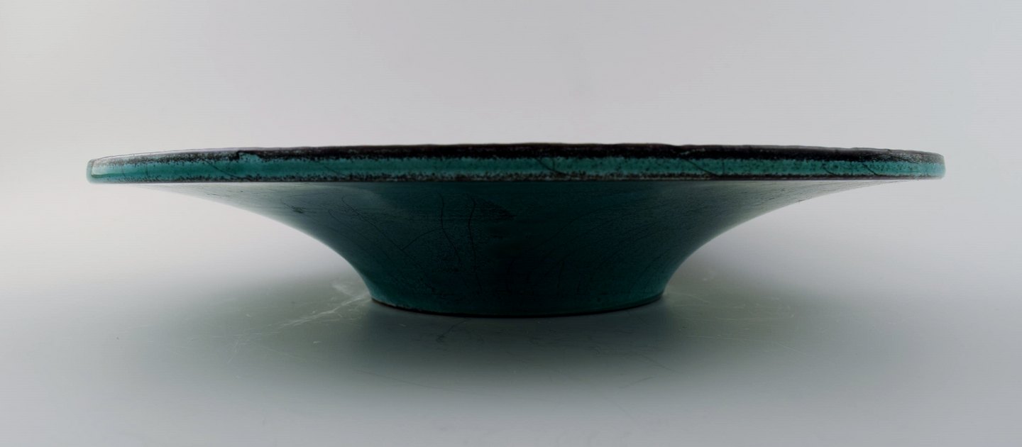 Kähler, HAK, glaseret skål, 1930'erne. Stor model. Designet af Svend Hammershøi. Glasur i sort og grøn. Måler 30 x 6 cm. Stemplet. I perfekt stand.
