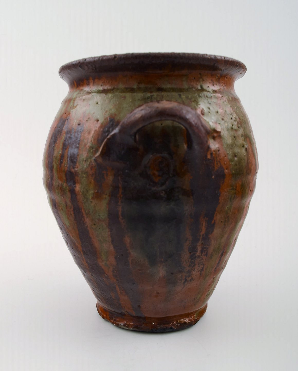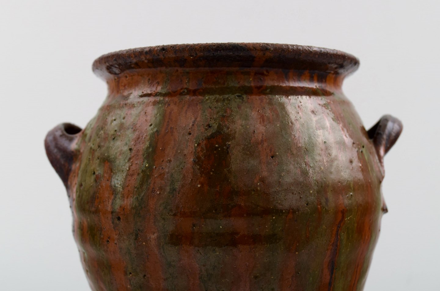Gutte Eriksen, own workshop, pottery vase with handles. Denmark, mid 20 c. Marked. Measures 15 x 15 cm. In perfect condition.
