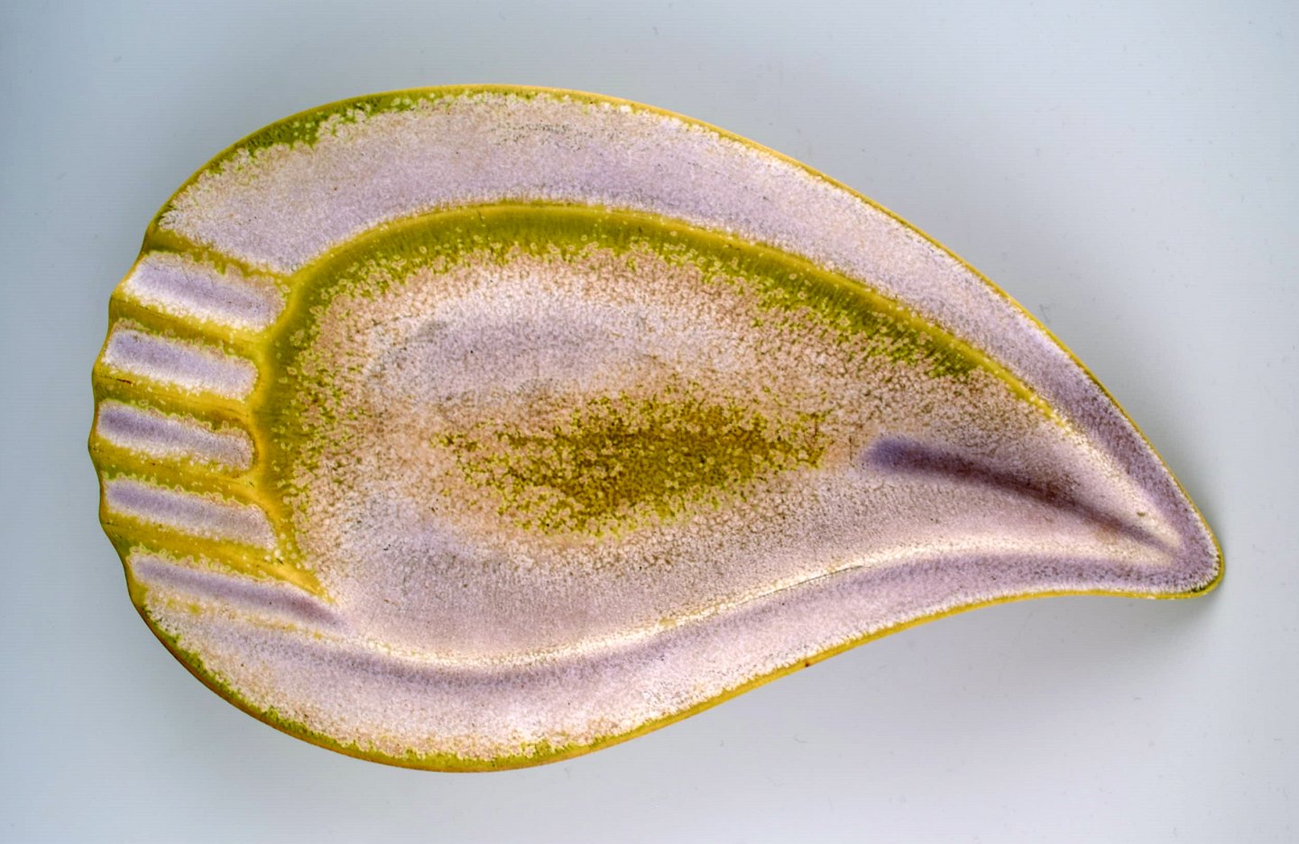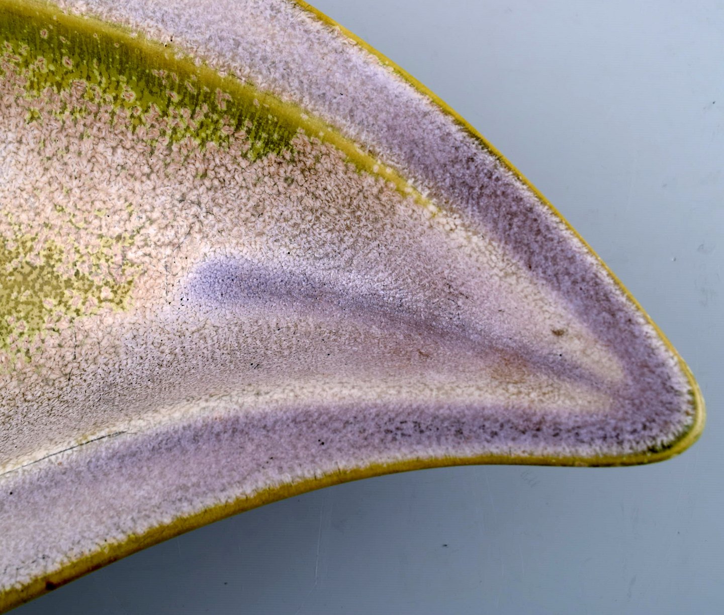 Rörstrand, Gunnar Nylund large ceramic bowl. Glaze in yellow and violet tones. Measures: 33.5 cm. x 20 cm. x 5 cm. In perfect condition. 1st. assortment.