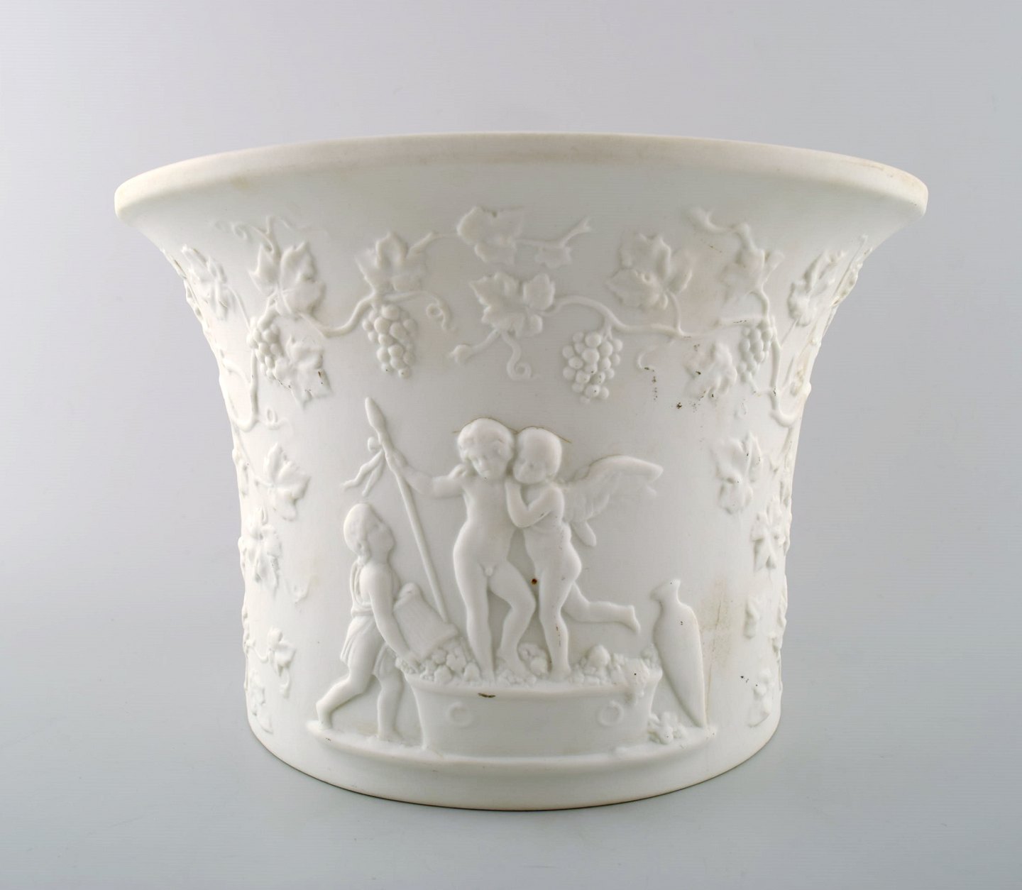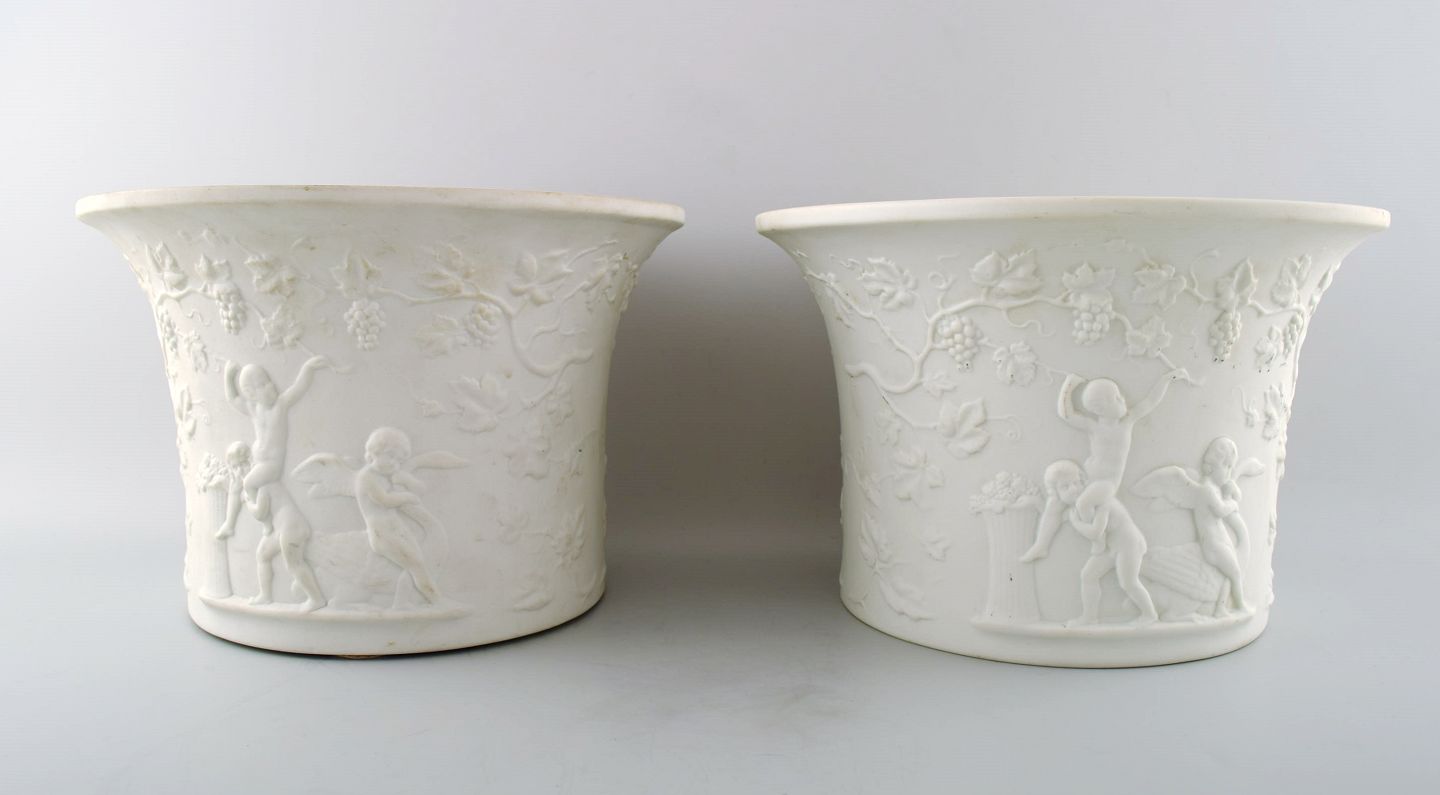 B&G efter Thorvaldsen, et par sjældne urtepotteskjulere i biscuit. Måler 22 x 15,5 cm. Stemplet. I perfekt stand, 1. sortering.