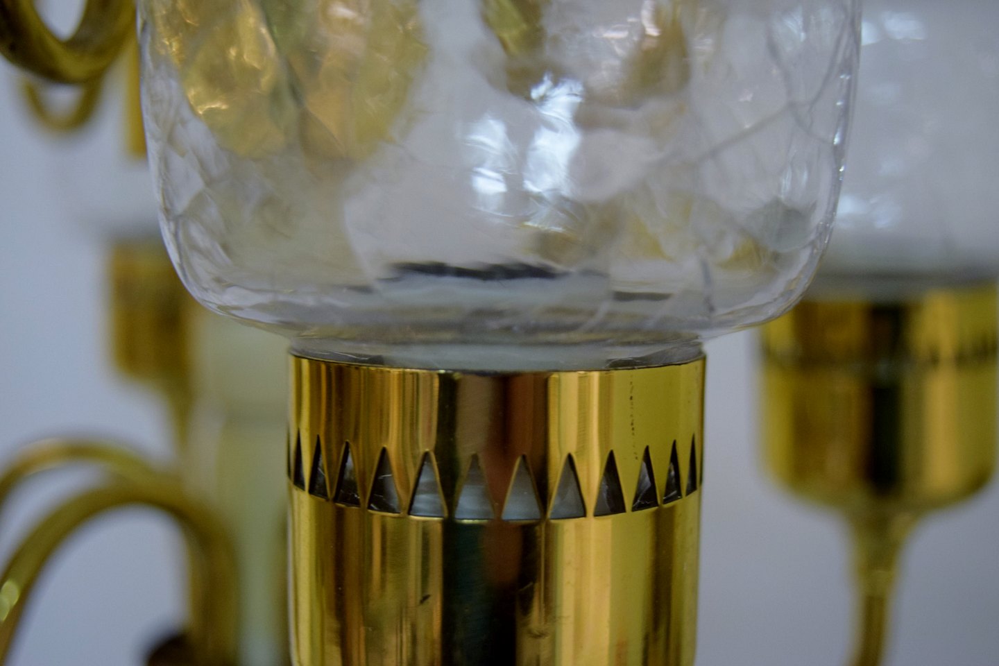 Imponerende Hans Agne Jakobsson, loftsbelysning, Markaryd, 1960-70´erne, 11 glasskærme i mundblæst kunstglas, messing skelet.