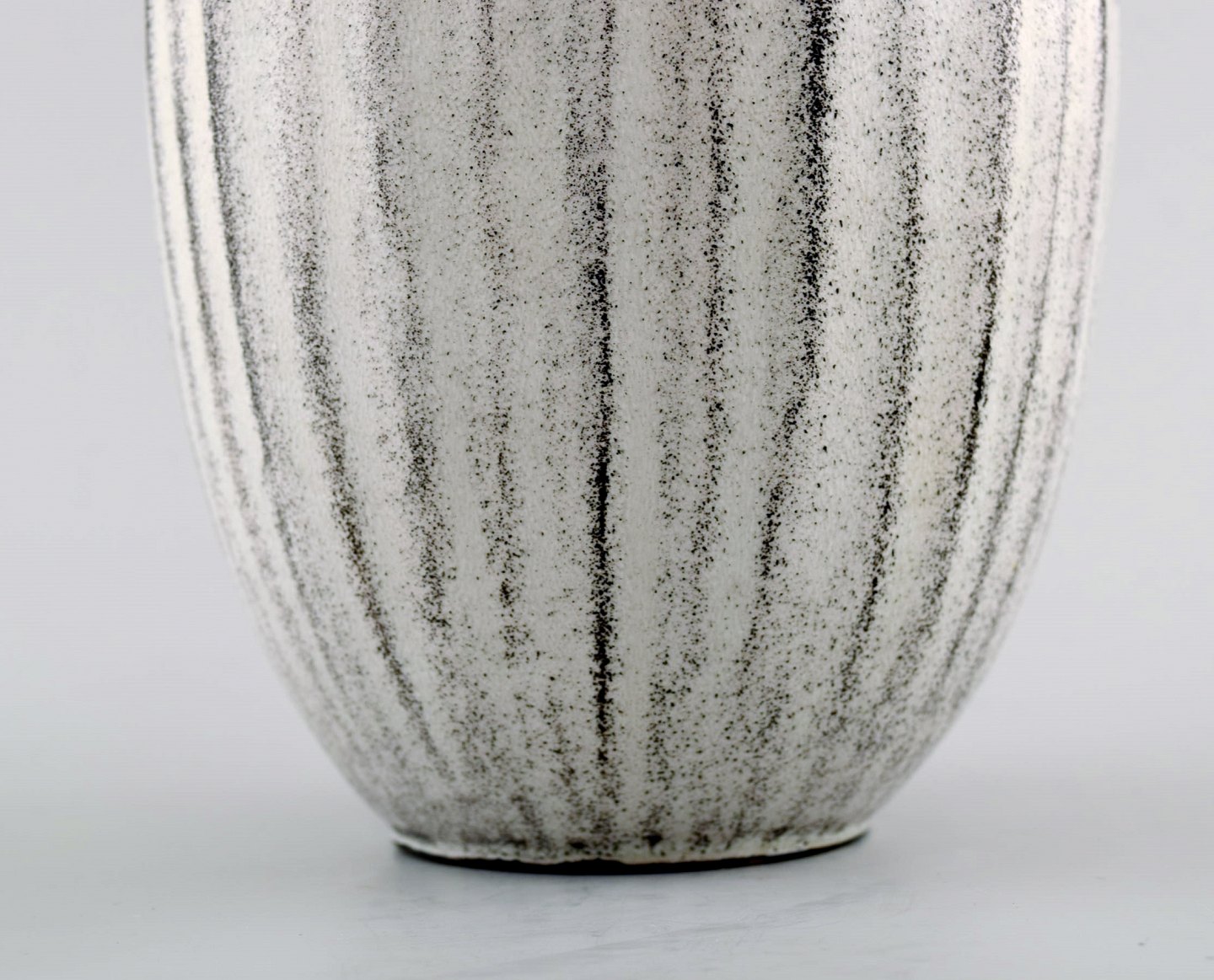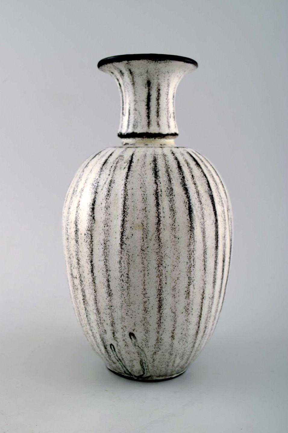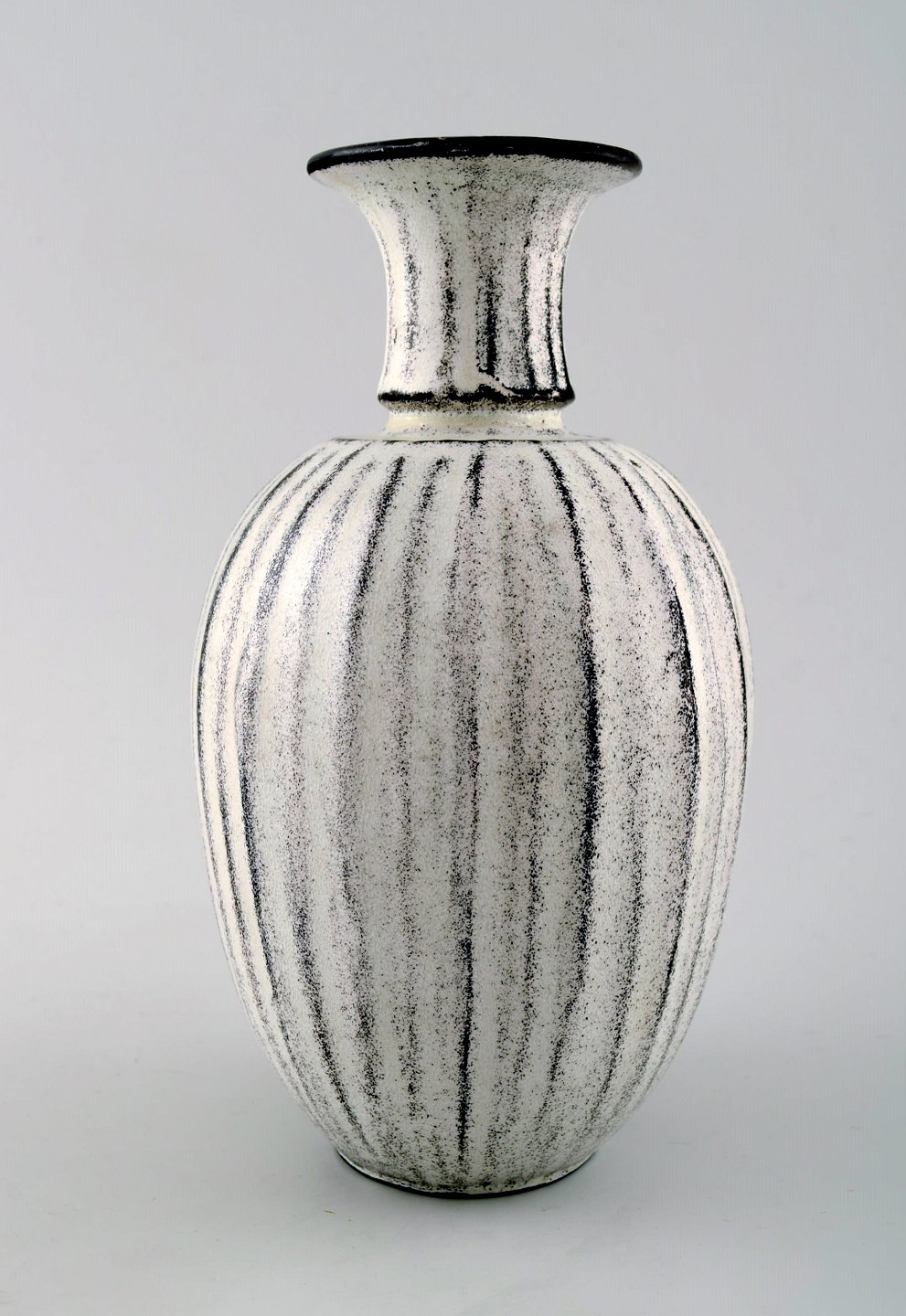 Kähler, Denmark, large glazed vase, 1930s. Rare form. Designed by Svend Hammershøi. Glaze in black and gray. Measures 21 x 12 cm. Stamped. In perfect condition.