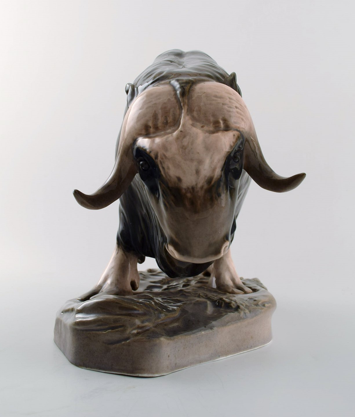 Sjælden og tidlig Royal Copenhagen. Moskusokse, figur af porcelæn, nr. 530. Erik Nielsen 1903. Måler : 29 cm. x 21 cm. I perfekt stand. 1. sortering.