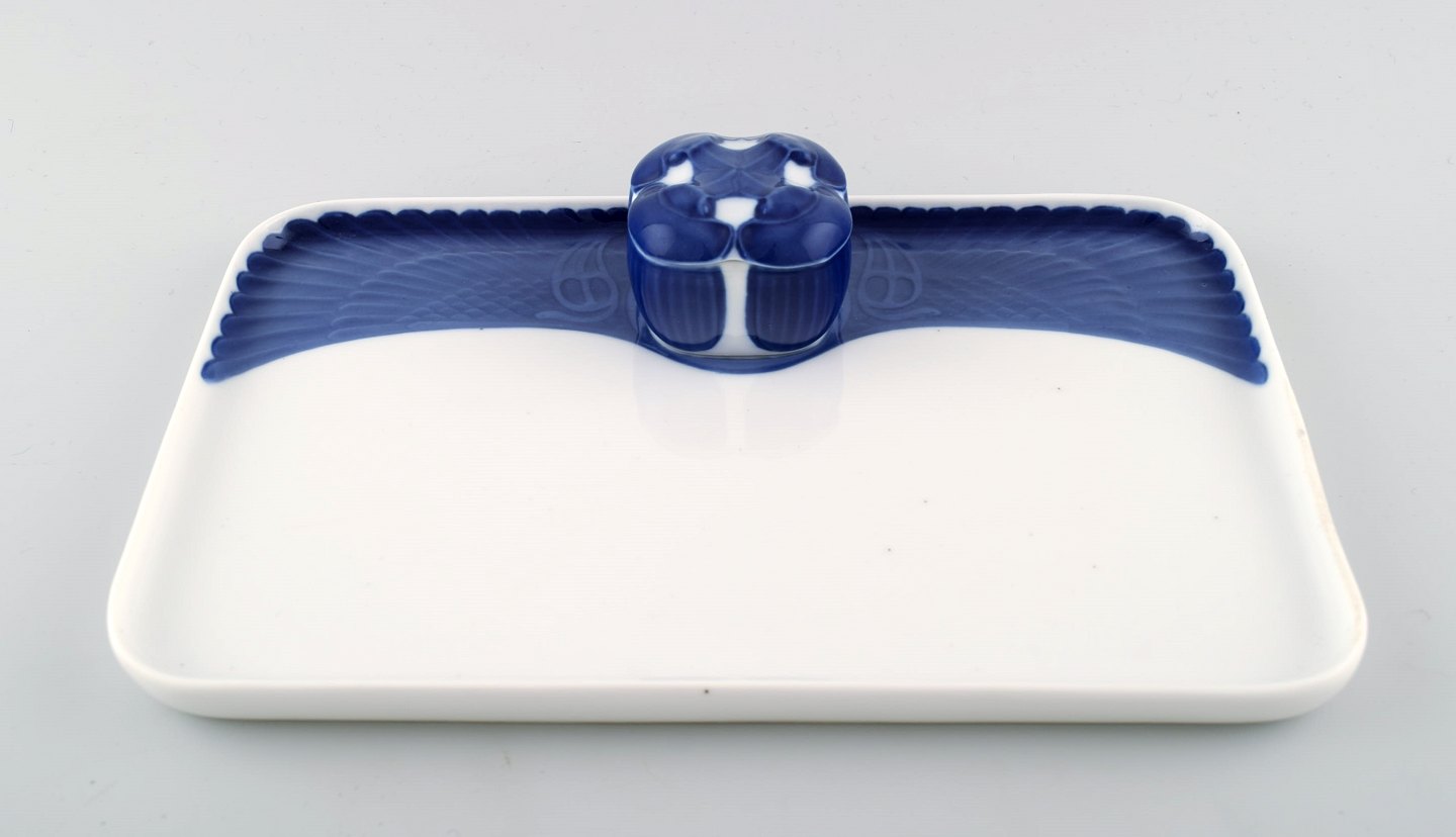 Sjældent Royal Copenhagen art nouveau blækhus på bakke. Tidligt 1900 tallet. Måler 25,5 cm. x 16 cm. x 5,5 cm. Stemplet. 1. sortering, i perfekt stand.
