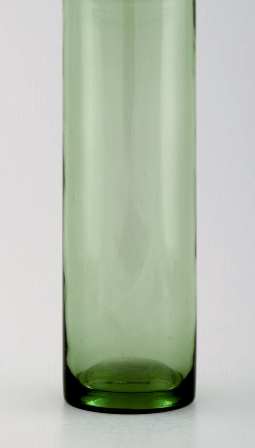 Nanny Still for Riihimäen Lasi, finsk glaskunst dekorationsflaske. I perfekt stand. Smuk grøn farve. 1960´erne. Måler 32 cm. x 6,5 cm. Stemplet.