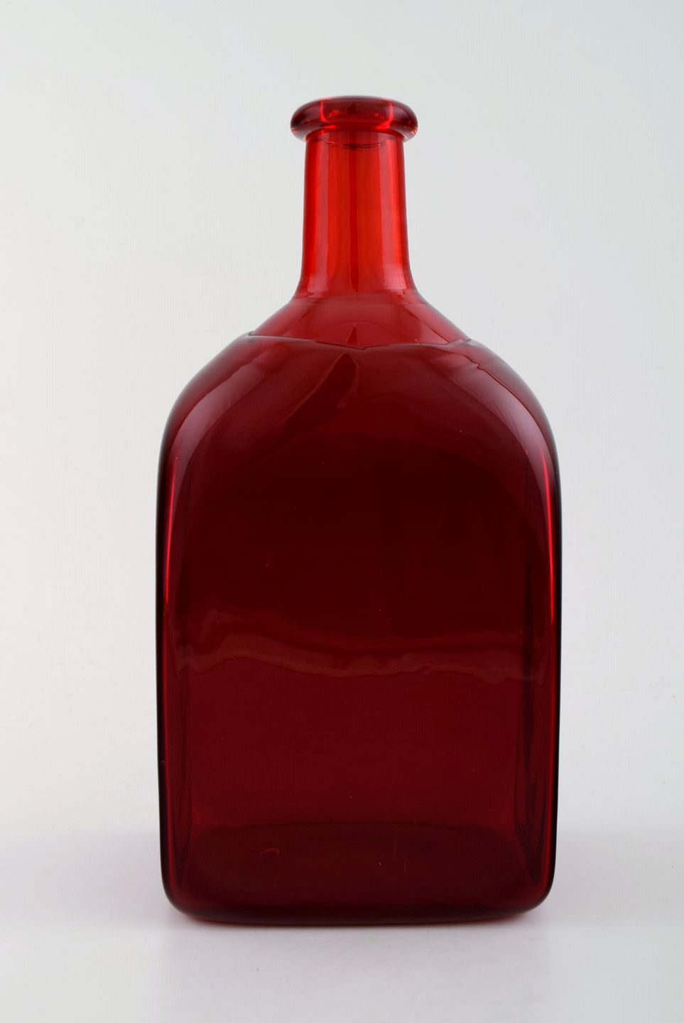 Riihimaki Riihimaen, Finland, karaffel af rødt kunstglas. 1960'erne. finsk design. Måler: 22 cm. x 11 cm. I perfekt stand.