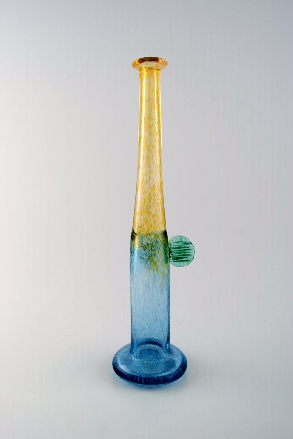 Kunstglasvase, designet af Bertil Vallien, fremstillet af Kosta Boda. I perfekt stand. Signeret. Højde: 34 cm. Bredde: 9 cm.