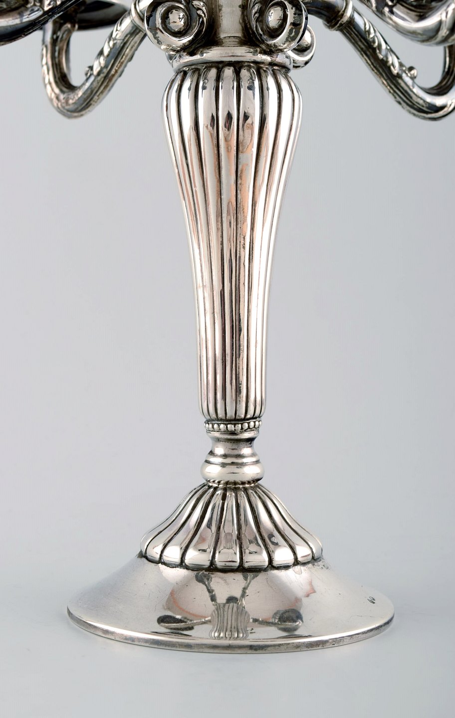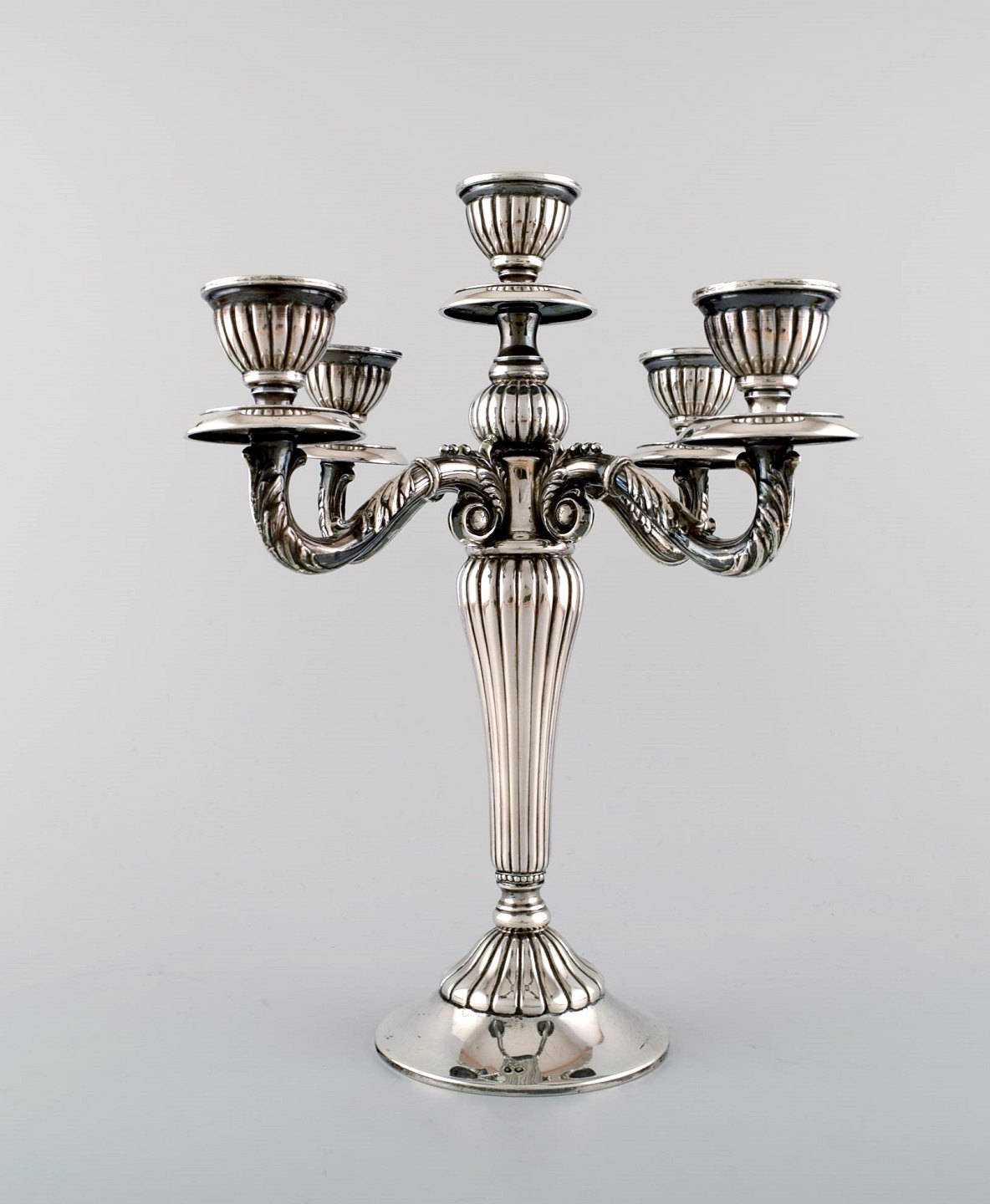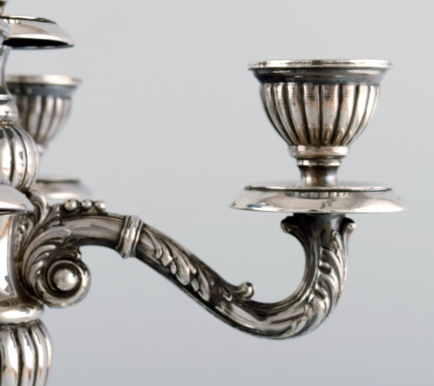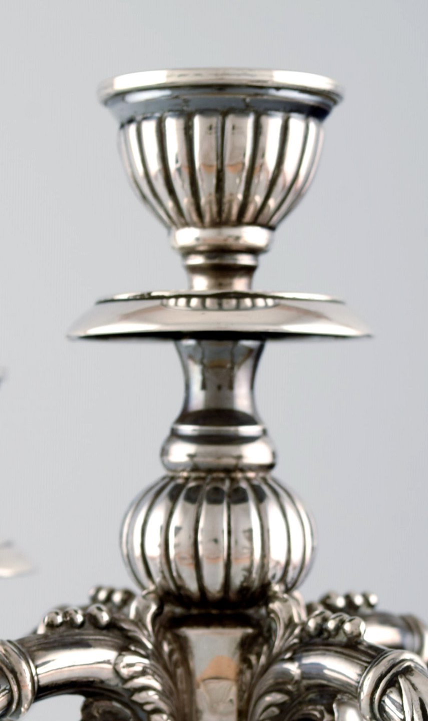 Et par spanske kandelabre i sølv, tidligt 20 årh. Flot kvalitet, smukt klassisk design. Måler : 35 cm. x 30 cm. Udfyldte, vejer 2 kg. Stemplet.