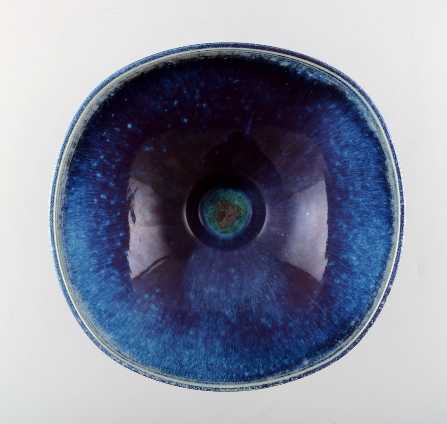 Berndt Friberg Studio stor keramik skål. Moderne svensk design. Unika, håndlavet. Fantastisk glasur i blå/turkise nuancer. Perfekt. 1. sortering. Måler 18,5 x 10 cm.