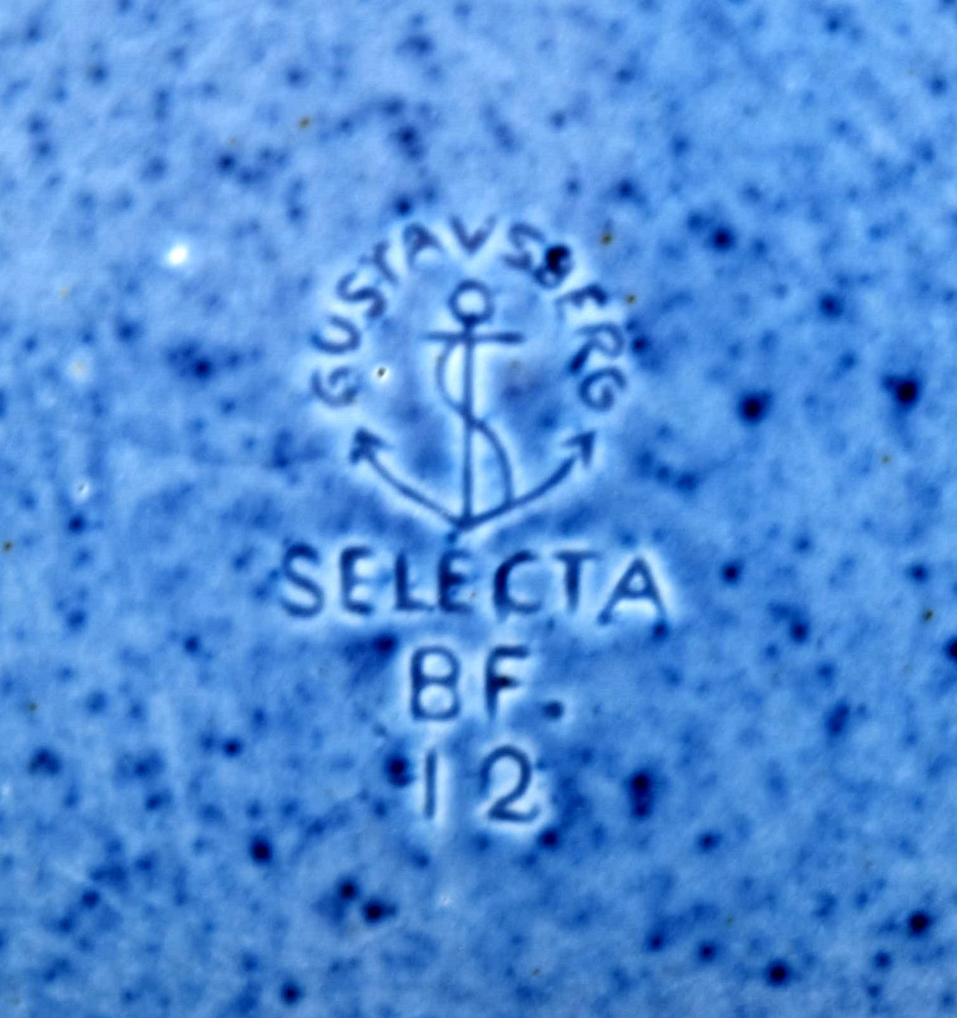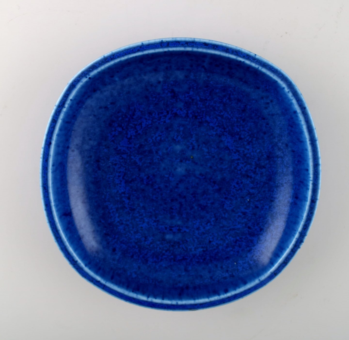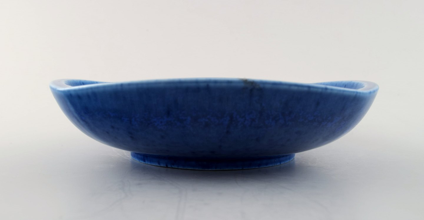 Berndt Friberg "Selecta" keramikfad for Gustavsberg. Fantastisk glasur i blå nuancer. Stemplet. Perfekt. 1. sortering. Måler: 16 cm. x 4 cm.