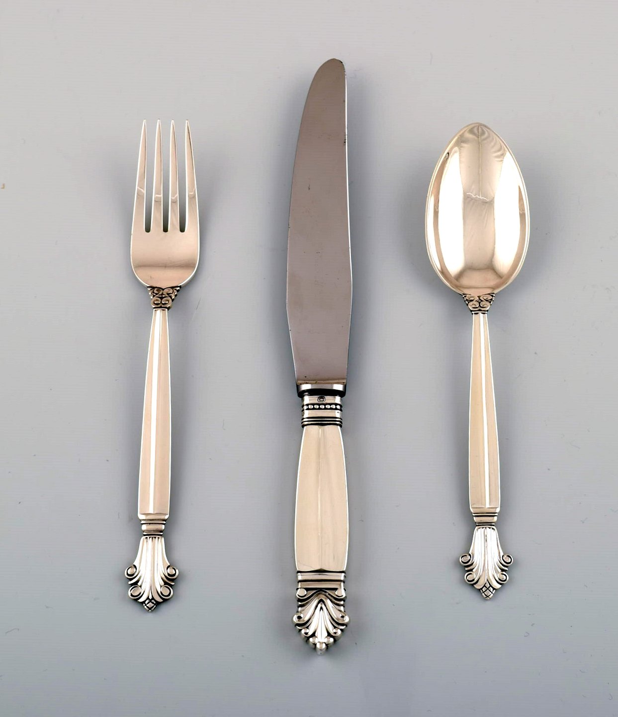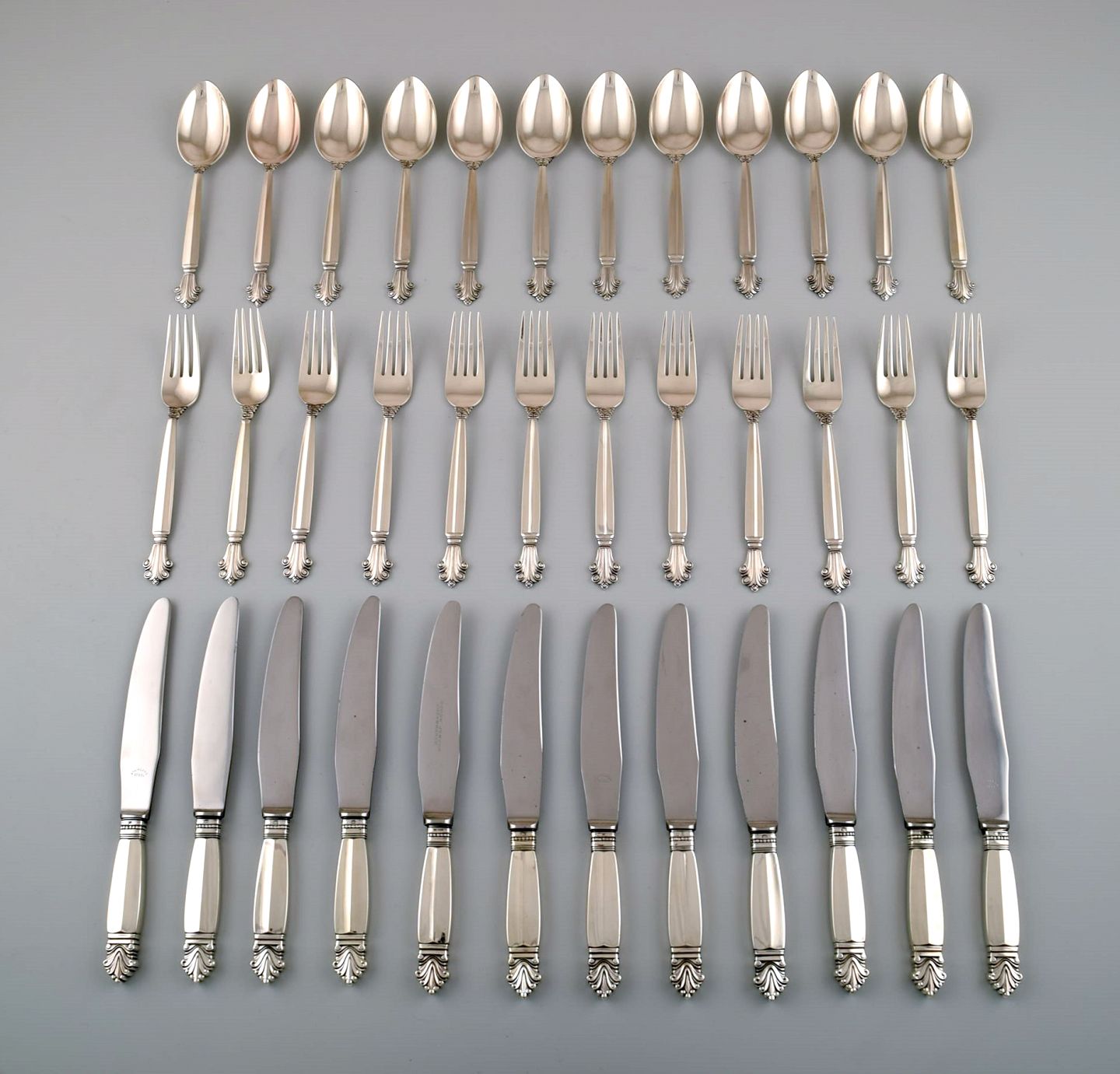 Bestående af : 12 middagsknive, 12 suppeskeer, 12 middagsgafler.
