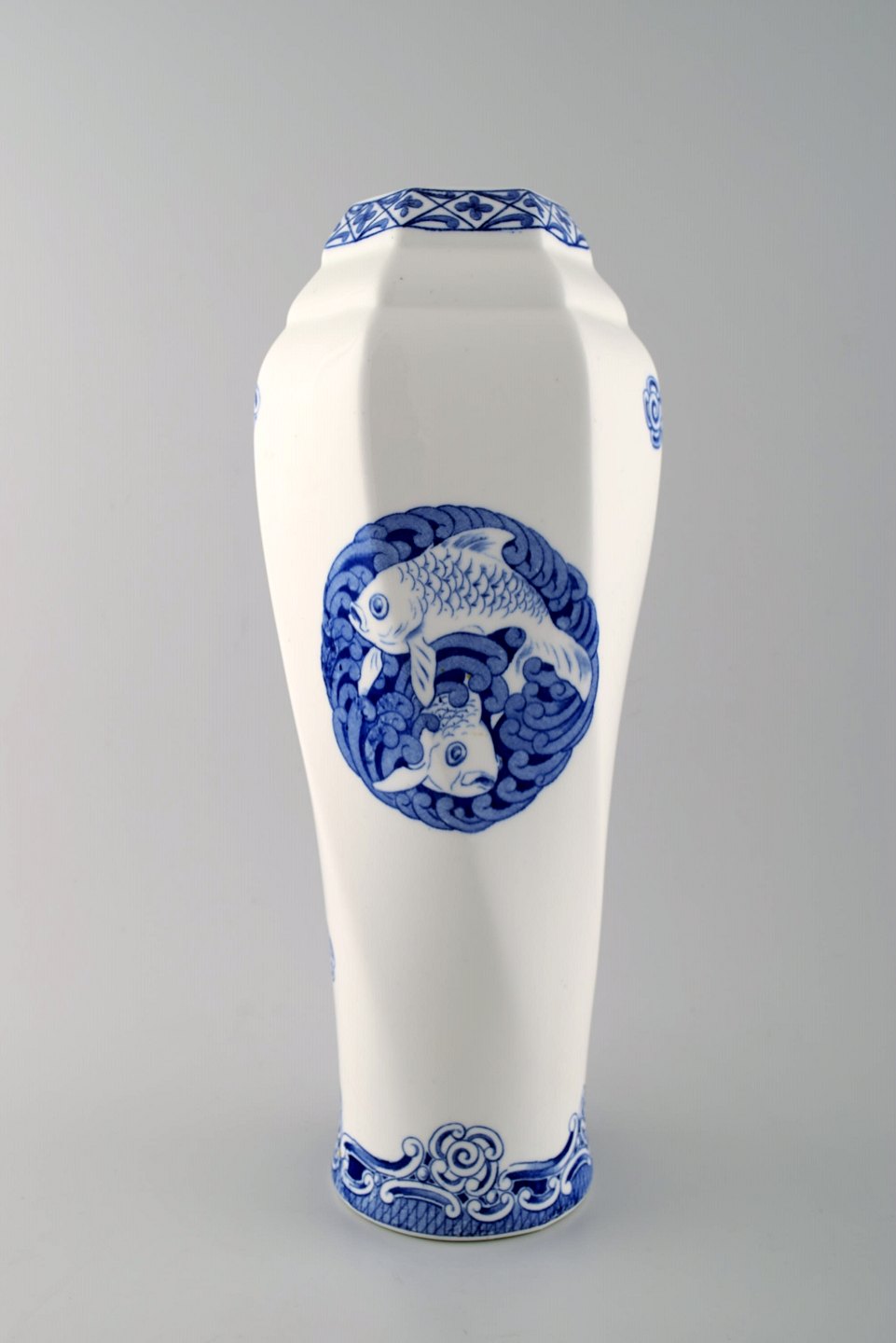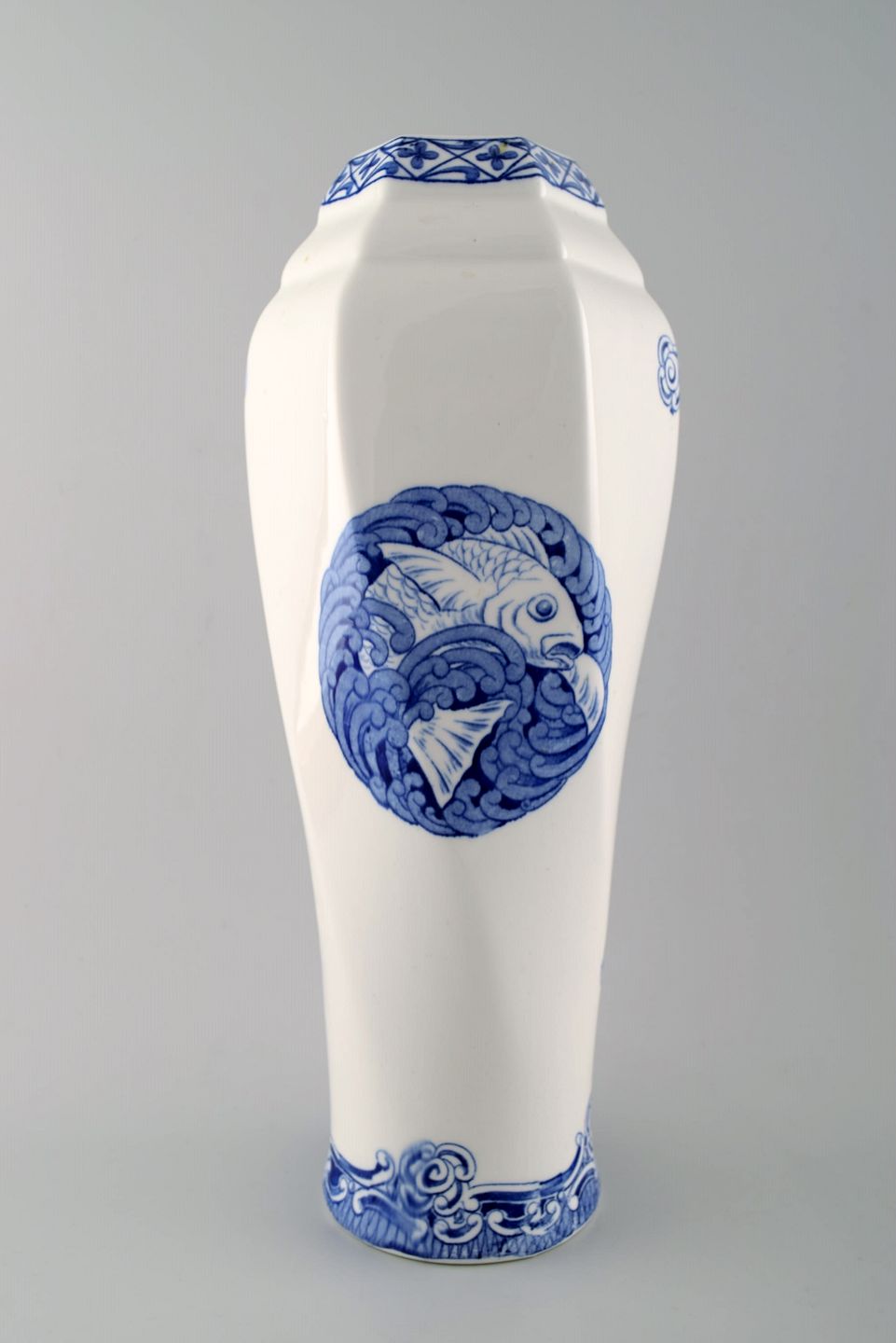 Rörstrand, stor vase i fajance dekoreret med fisk.