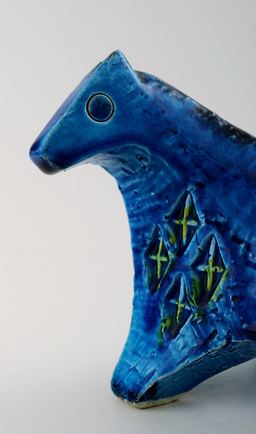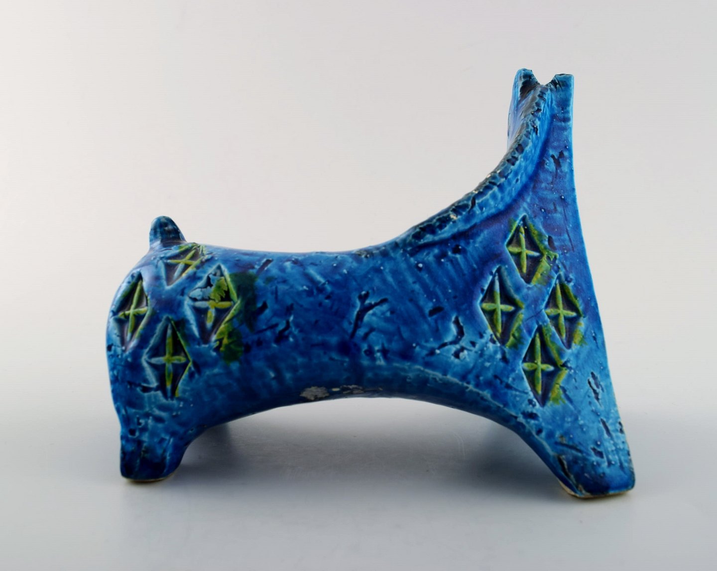 Bitossi, Rimini blue figure in ceramics, designed by Aldo Londi. Unstamped. 1960s. Measures: 14,5 cm. x 11,5 cm. In perfect condition.