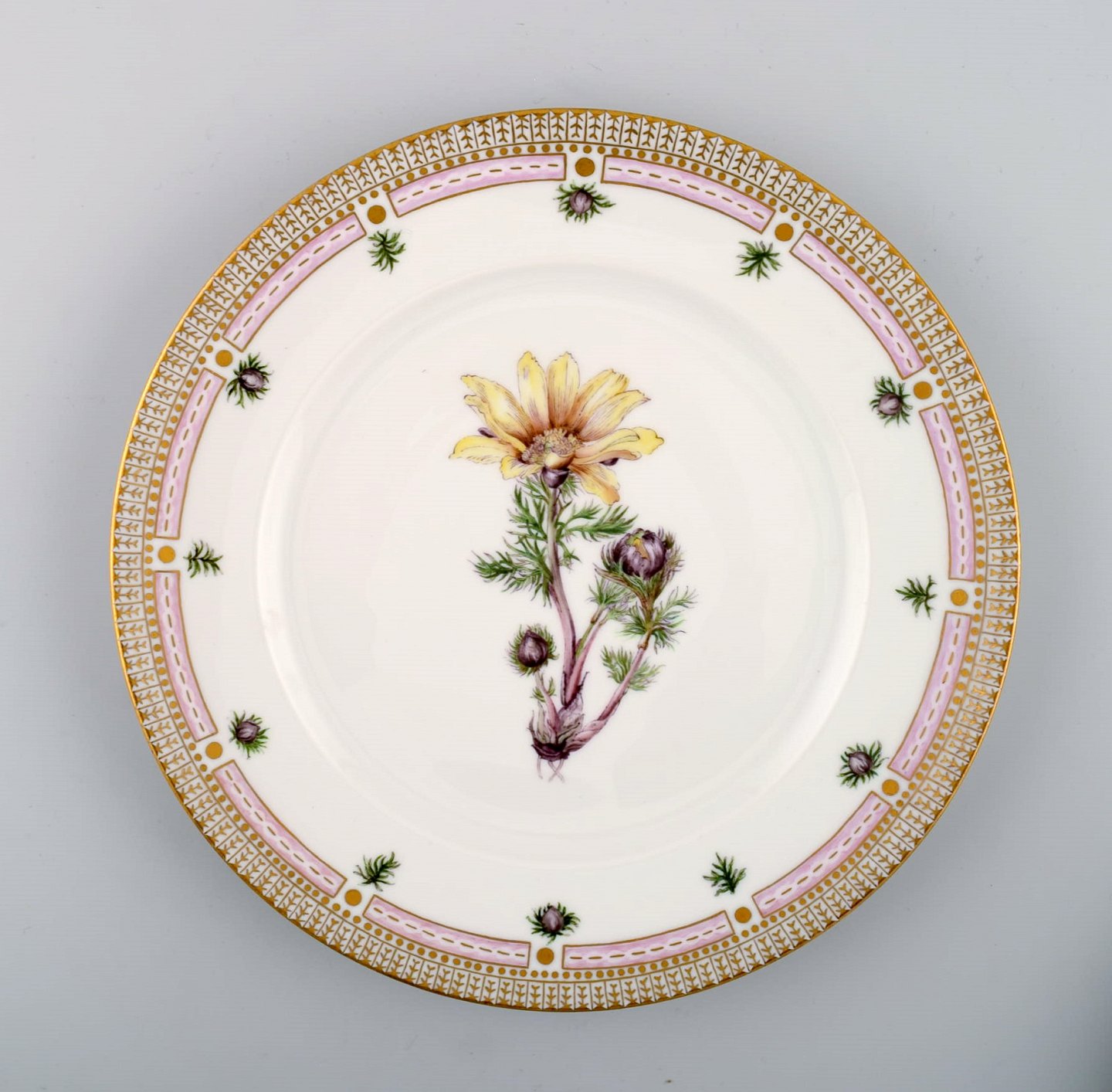 Four dinner plates in Flora Danica style. Hand painted in 1966, high quality. Measures: 25.5 cm. Stamped. In perfect condition.