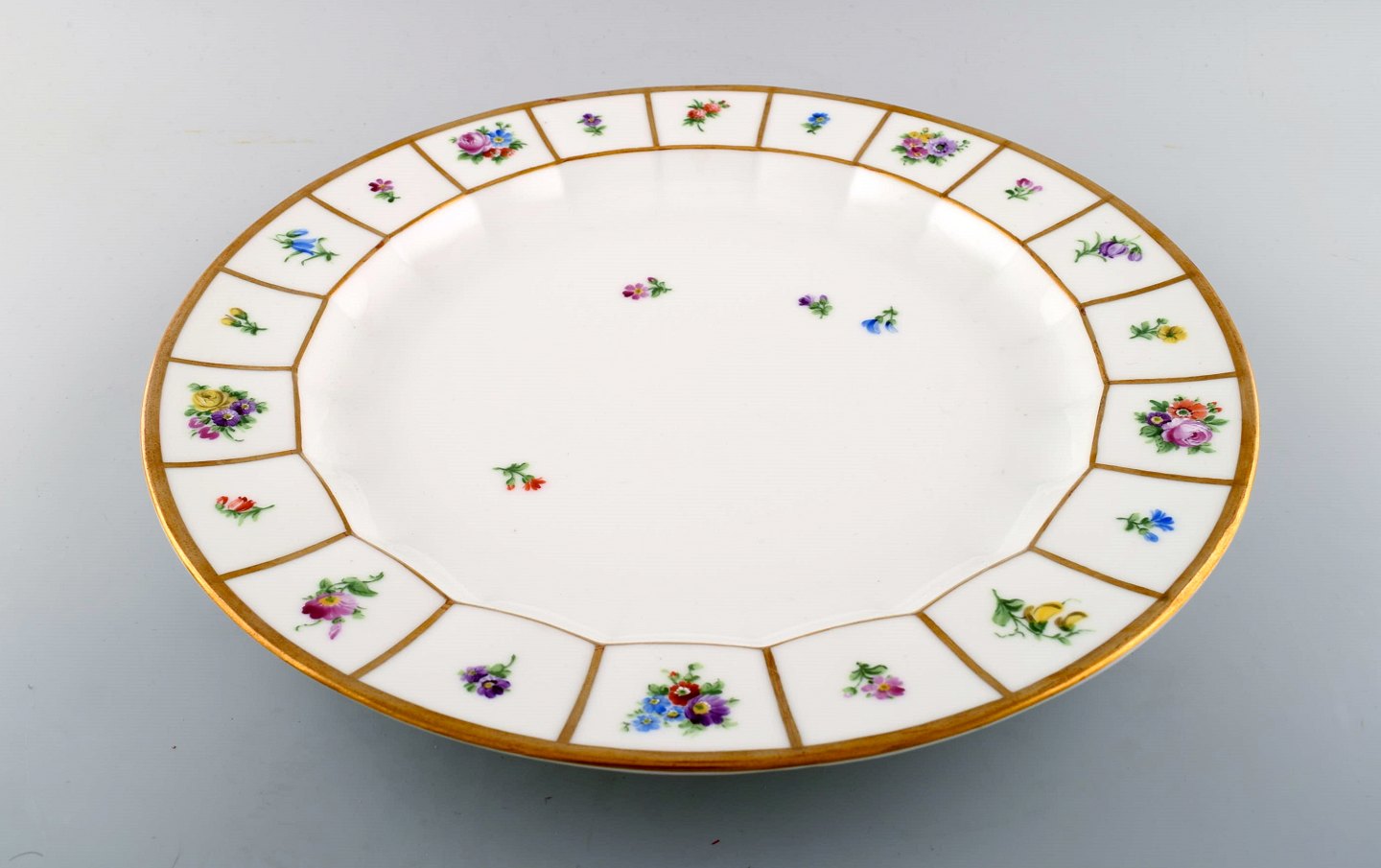 Kgl. porcelæn. Royal Copenhagen Henriette stort rundt fad. Håndmalet porcelæn, Kgl. Henriette nr. 444/8544.
