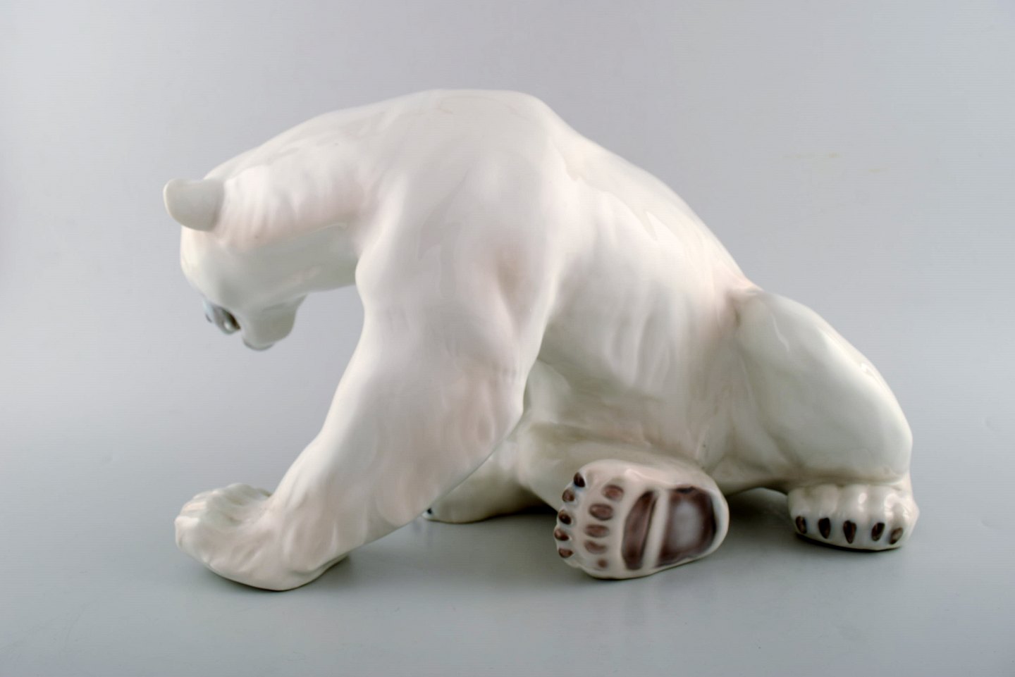 Bing og Grøndahl. Knud Kyhn. Isbjørn af porcelæn, nr. 1857 1. sortering. I perfekt stand. H. 21. L. 36 cm. Stemplet.