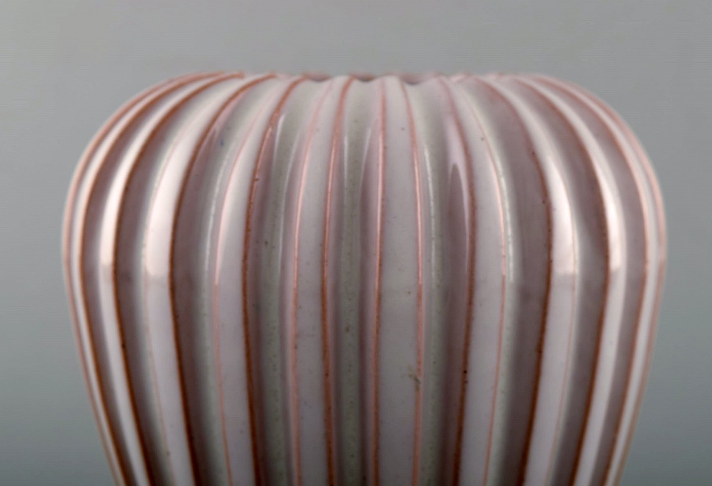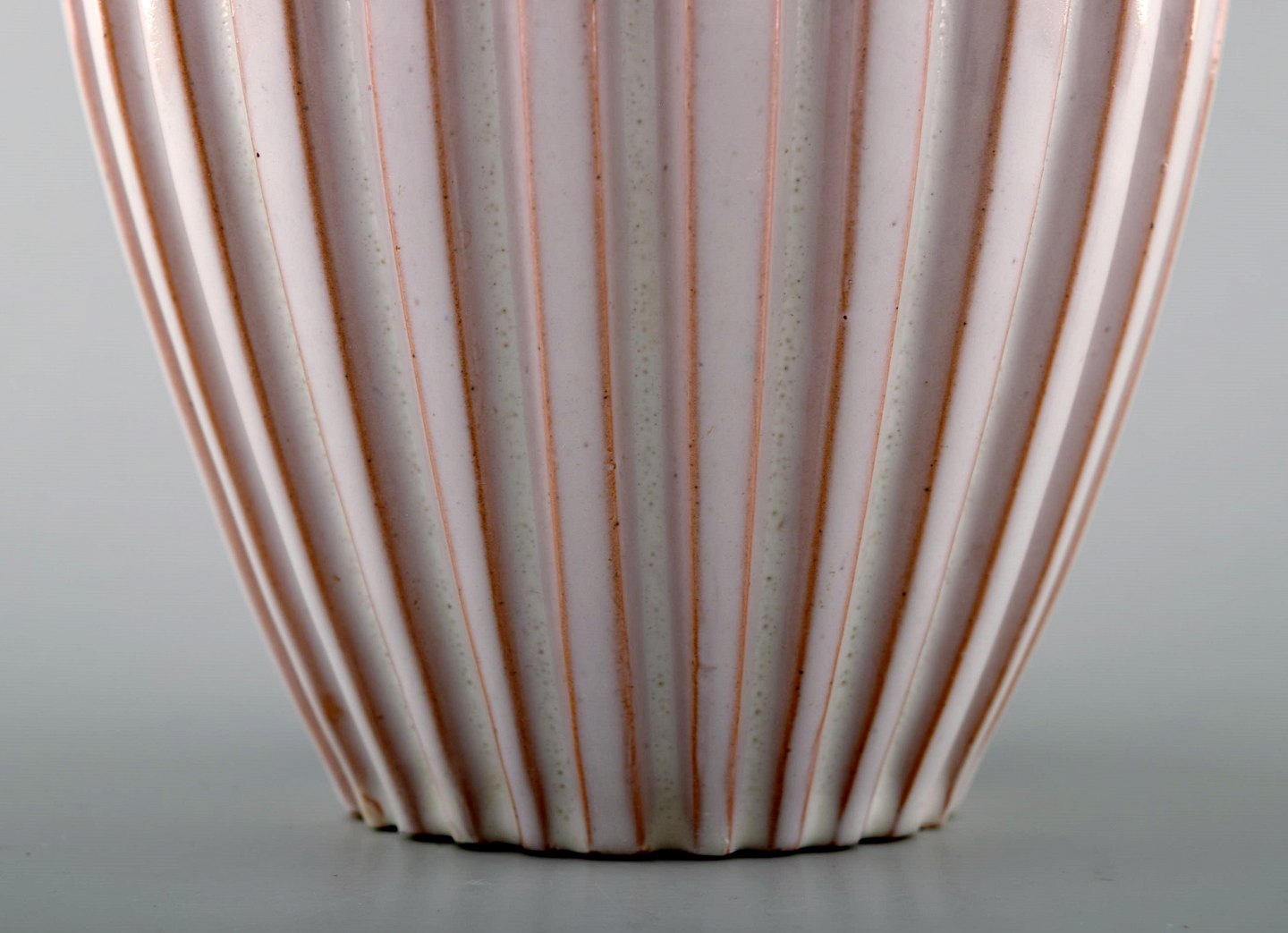 Keramik, Original Riflet / Rillet vase, Eslau Gammel/tidlig Eslau vase. Hvid glasur. I perfekt stand. Signeret Eslau. Højde: 15 cm. Diameter : 12,5 cm.