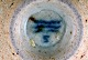 Snorre Stephensen: Lille skål af stentøj dekoreret med træ i blå og grøn glasur samt med transparent overglasur.