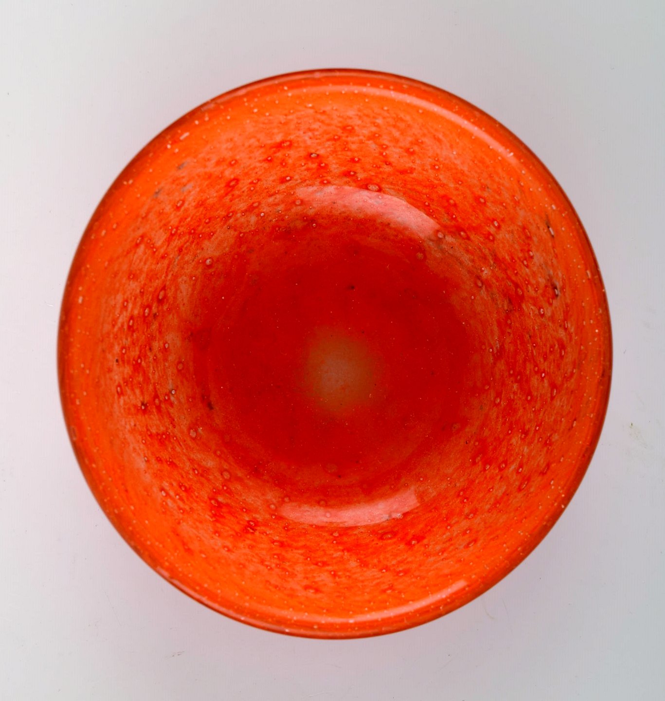 Samling skandinaviske orange kunstglasvaser og skåle, bl. a. Holmegaard.