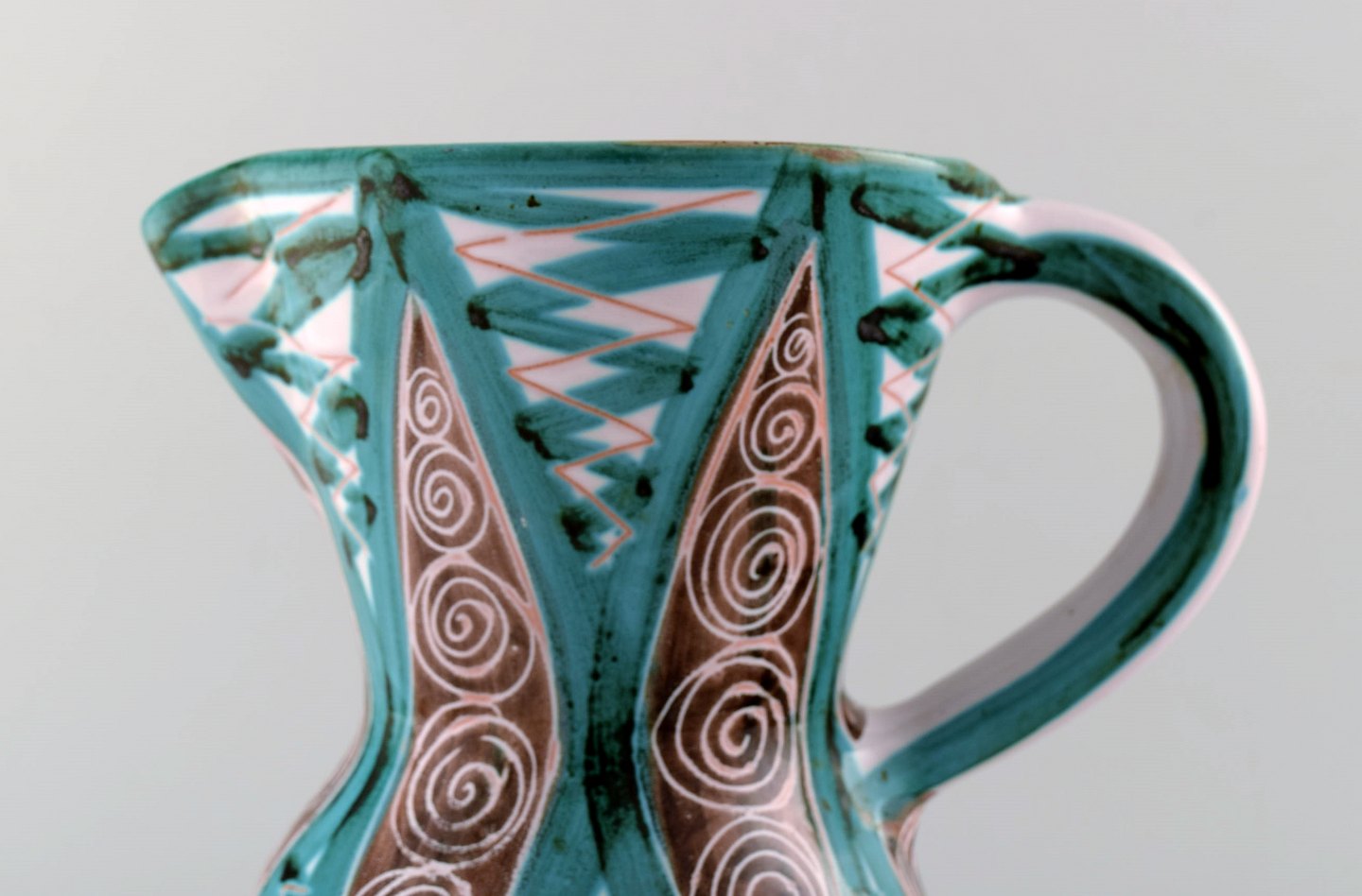 Roger Picault for Vallauris, Frankrig. Stor håndmalet keramik kande. Signeret : RP. Midt 1900-tallet. Roger Picault arbejdede sammen med Picasso. I perfekt stand. Måler : 22 cm. x 20 cm.