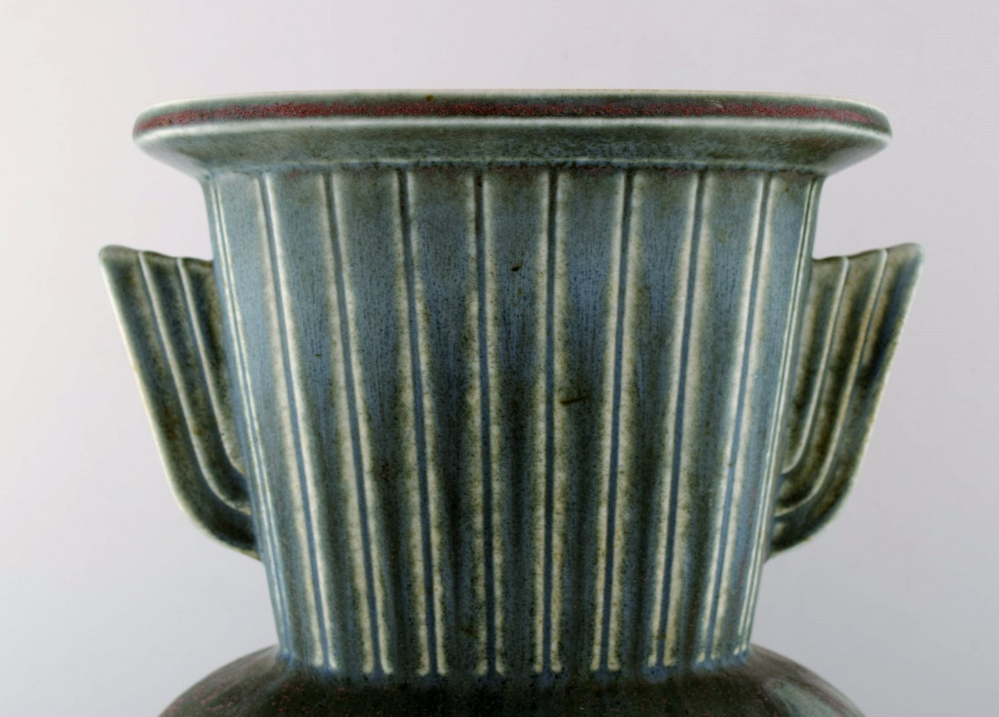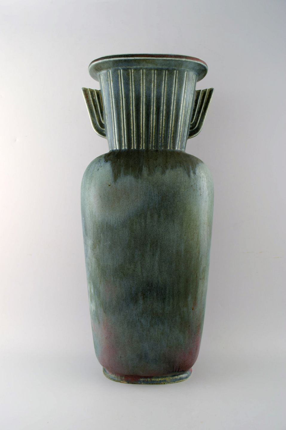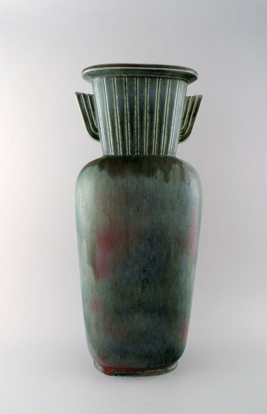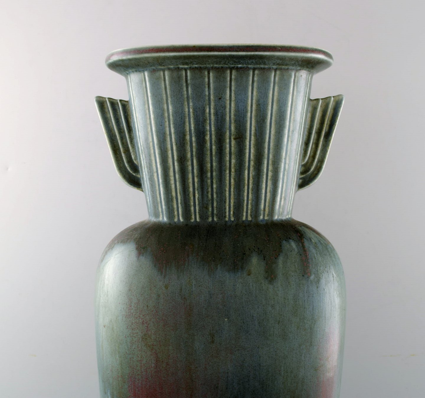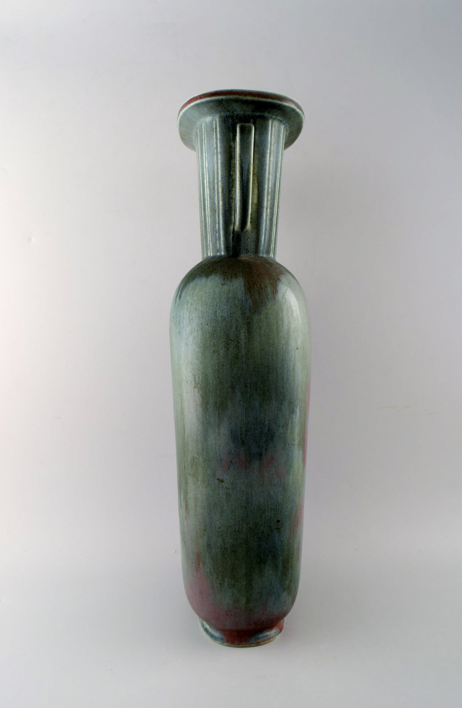 Large Rörstrand "Air Force" floor vase in ceramics by Gunnar Nylund. 50 cm. high. Diameter 20 cm. In perfect condition. Beautiful glaze in green, blue and red tones. 1st. assortment. Stamped.