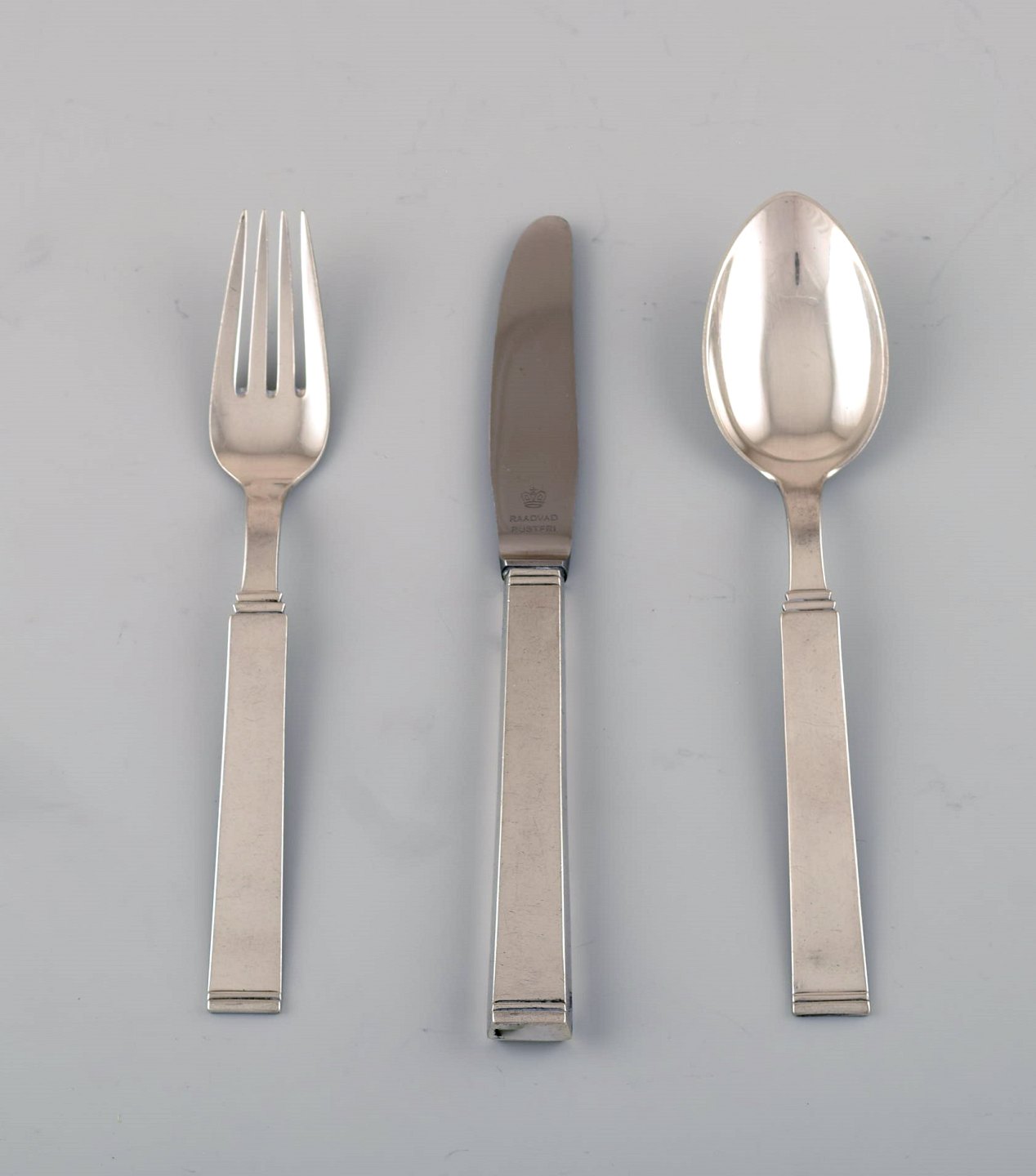 Horsens Silverware, Denmark: "Funkis III". Complete 8 person service. Silver Cutlery (0.830), consisting of 27 p. 1930/40s. Knife measures 19 cm. Serving spoon 24 cm. Stamped. In very good condition.