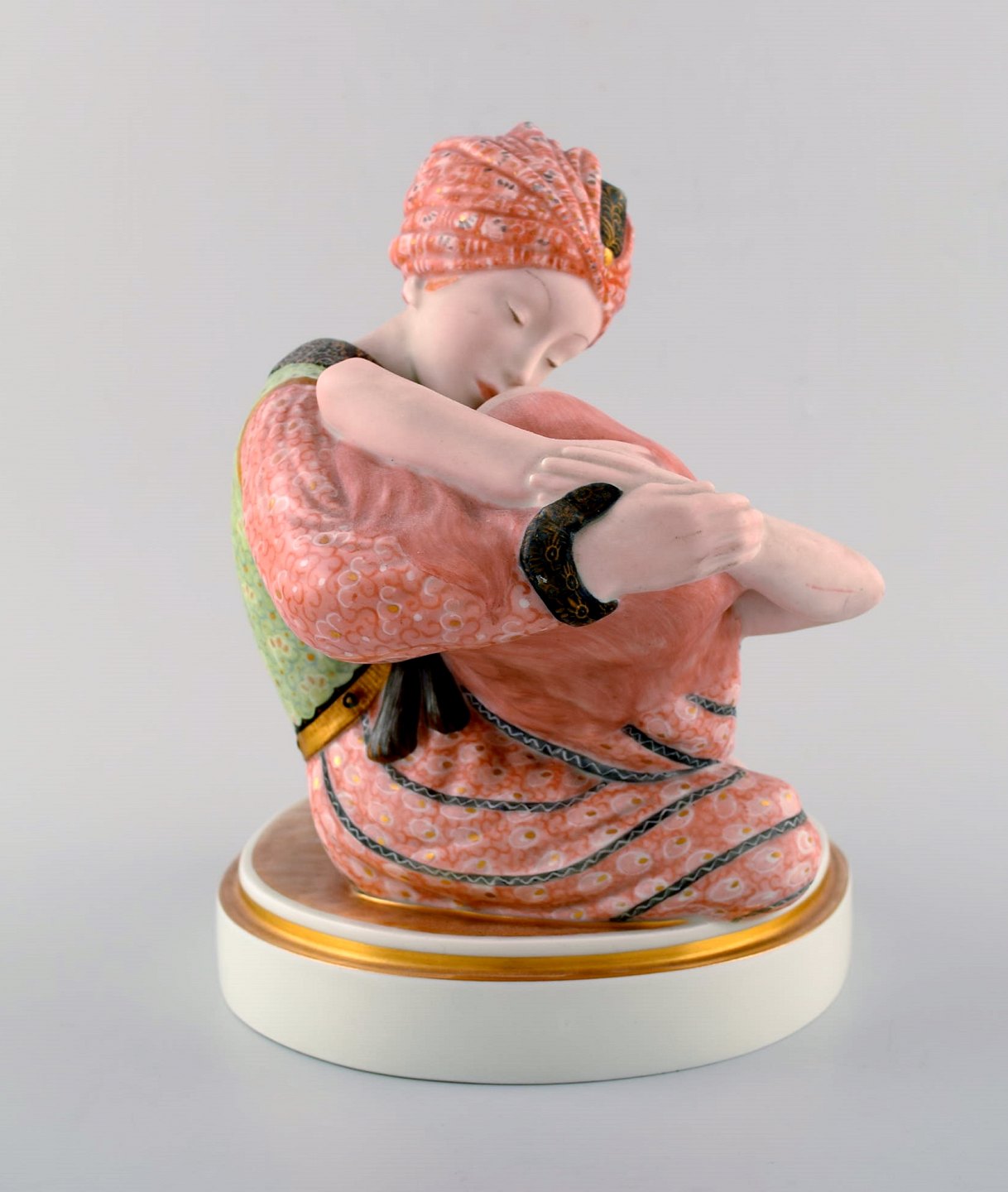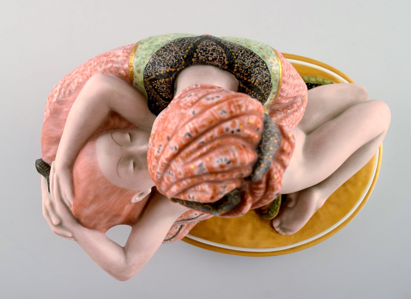 Royal Copenhagen. Gerhard Henning: "Adventure III" figure group of porcelain, decorated in overglaze colors and gold.
