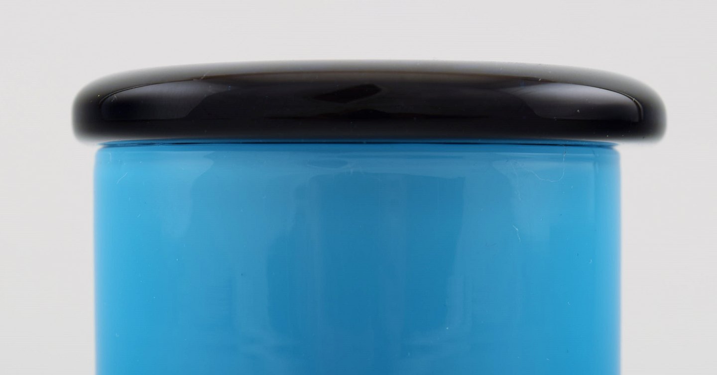 Holmegaard, Palet sennepskrukke fremstillet af turkist og blåt opalglas. Design: Michael Bang. Måler 7 x 7 cm. I perfekt stand.
