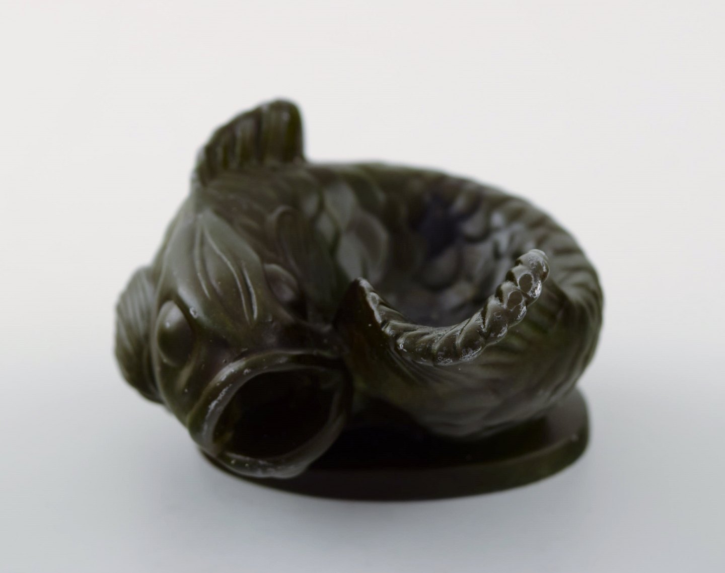 Just Andersen (1884-1943). Figur i disko metal i form af fisk. 1930/40´erne. Stemplet på bagsiden Just A, D 2012. Måler : 6,5 cm. x 4,5 cm. I god stand, brugspræg.