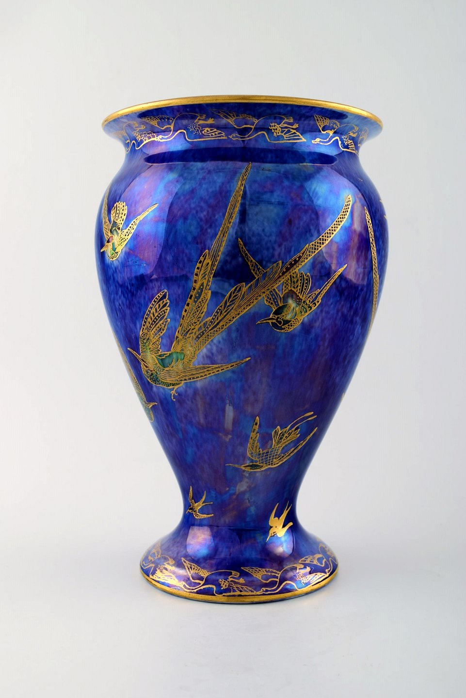 Wedgwood "Fairy" vase in luster glaze, decorated with birds.