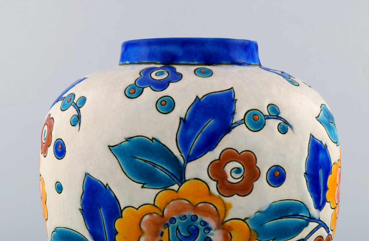 Boch Freres Keramis, Belgien stor art deco keramikvase. 1930/40´erne. I perfekt stand. Stemplet. Måler : 23 cm. x 22 cm.