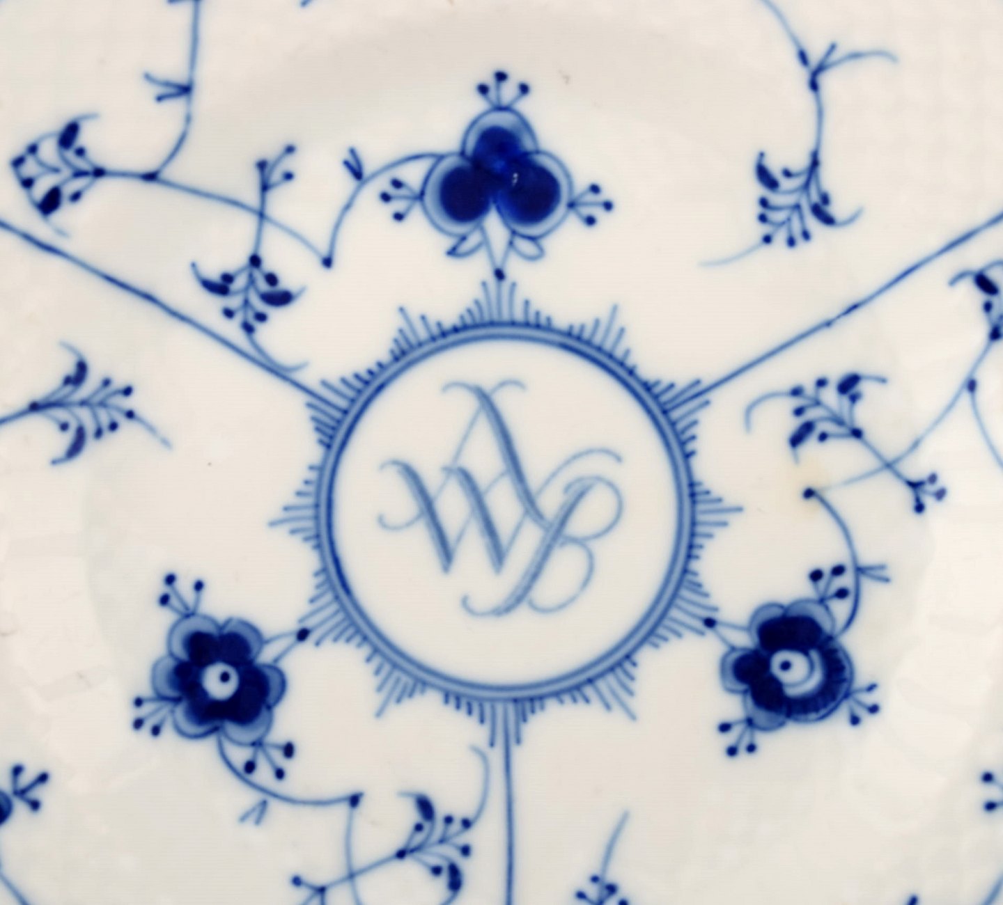 27 stk. B&G, Bing & Grøndahl Hotel/restaurantservice, jernporcelæn, musselmalet tallerkener. Med monogram.